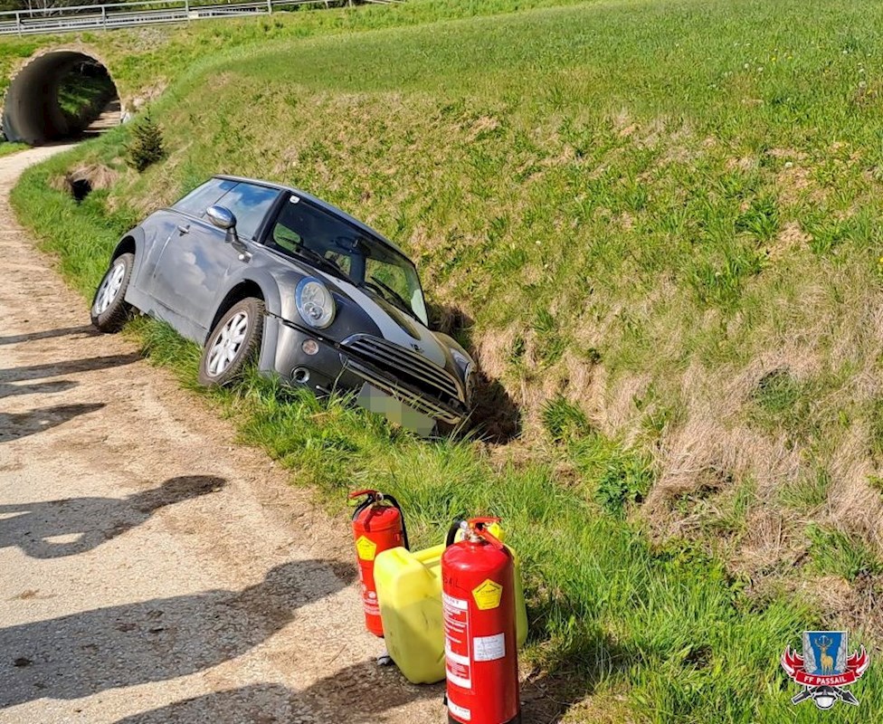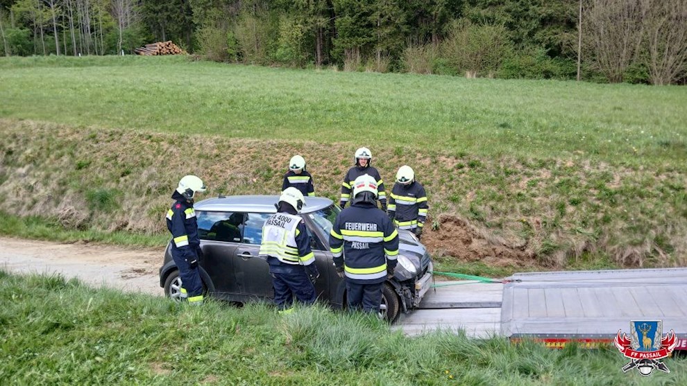 Grund der Alarmierung: Ein PKW kam von der Straße ab und landete weiter entfernt in einem Graben. Der Lenker wurde dabei leicht verletzt im Fahrzeug eingeschlossen.
