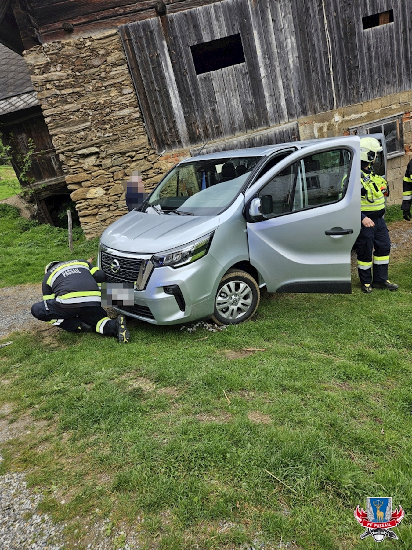 Grund der Alarmierung: Ein PKW blieb bei einem Wendemanöver in der nassen Wiese hängen.