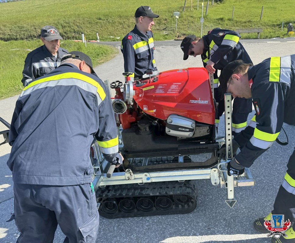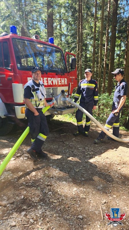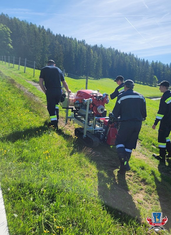 Unsere Aufgabe war es, zusammen mit den anderen Feuerwehren einen Relaisbetrieb zur Löschwasserförderung aufzubauen und das Löschwasser bis zum Gipfel des Gschaid zu befördern. Mit einer Tragkraftspritze und unserer Vorbaupumpe des LFA konnten wir 2 der insgesamt 6 Pumpen bis zum Gipfelkreuz stellen. Zum Brandobjekt wurden 1200 m Schlauchleitung verlegt und 960 Höhenmeter überwunden.
