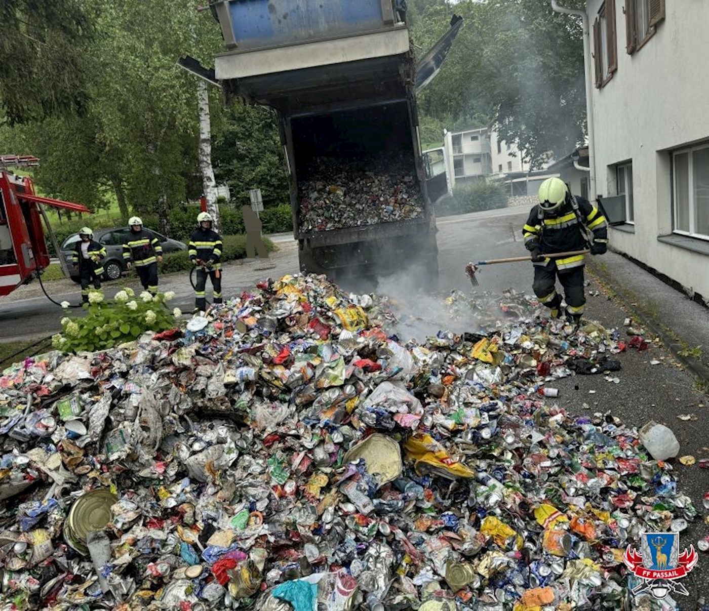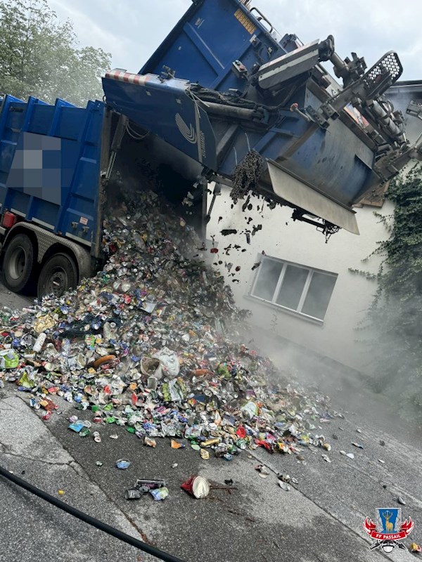 Grund der Alarmierung: Entstehungsbrand bei einem Abfall-LKW, der mit Aluminium-Abfällen beladen ist