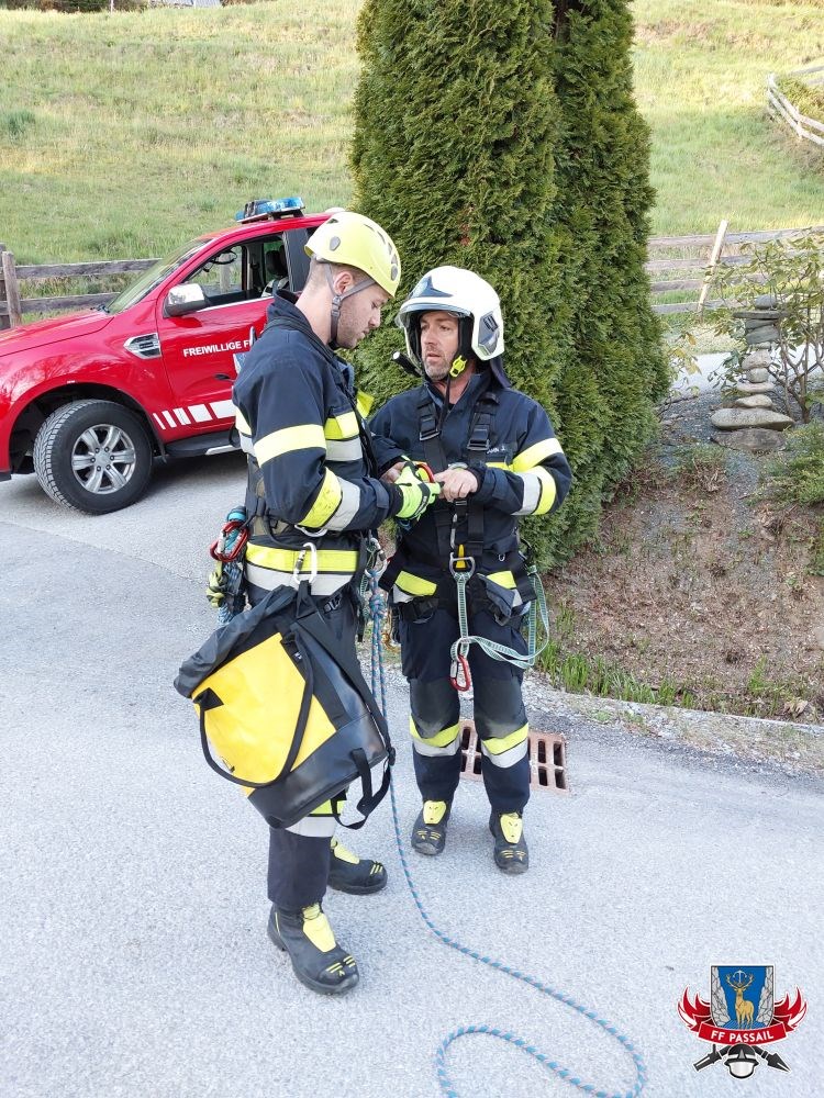 Tätigkeiten: Retten der Katze unter Zuhilfenahme der 3-teiligen Schiebeleiter und des MRAS-Sets