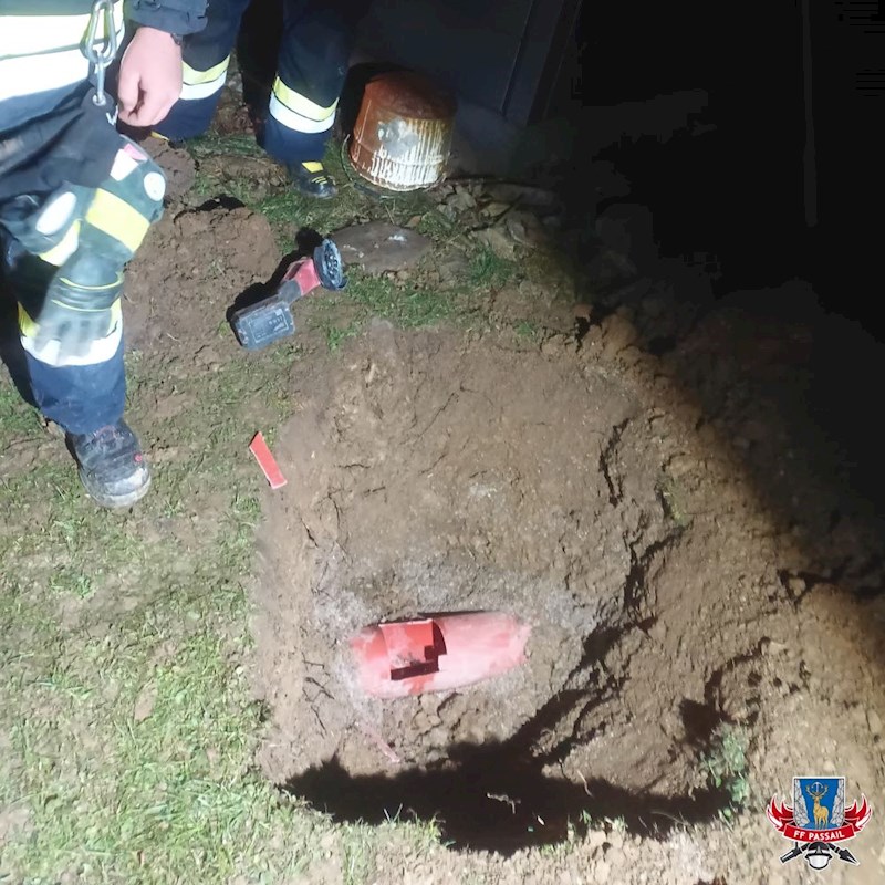 Tätigkeiten: Absichern und Ausleuchten der Einsatzstelle, Kontrollieren des Bereichs mittels Rohrkamera, Befreien der Katze durch Ausgraben des Rohres
