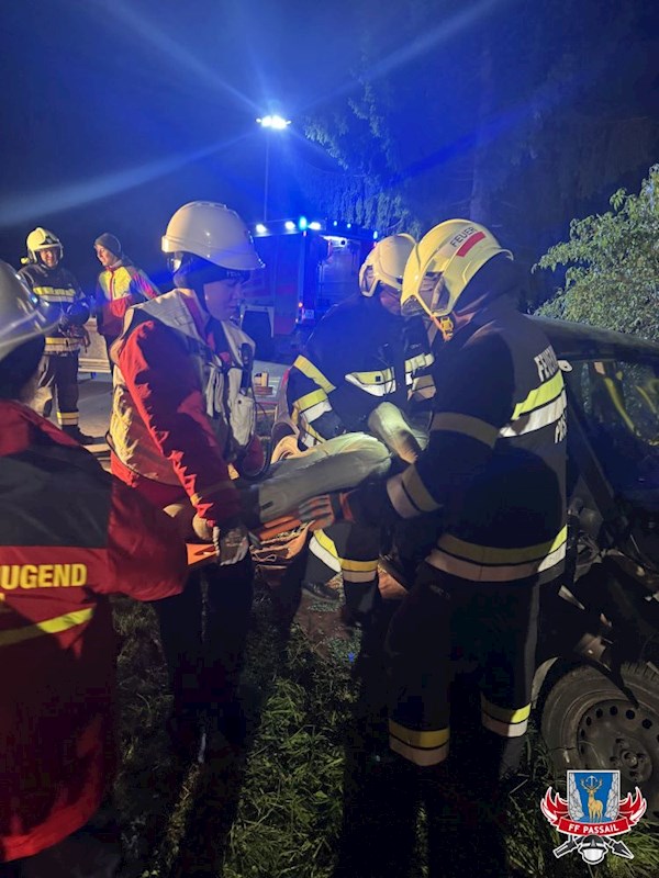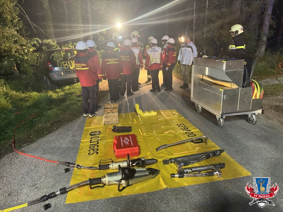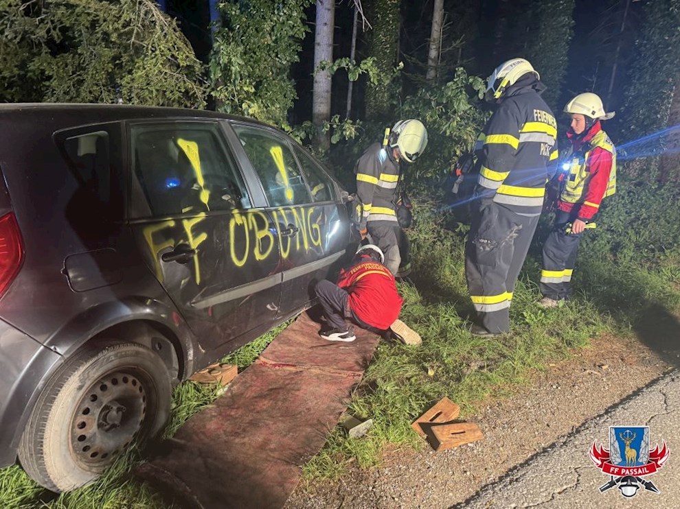 Nach einer kräftigen Stärkung vom Grill richteten alle ihren Schlafplatz ein. Doch lange Ruhe war nicht angesagt: Gegen 04:30 Uhr früh wurden die Jugendlichen durch Sirenengeheul geweckt und zur Einsatzübung nach Hohenau gerufen. Übungsannahme war ein Verkehrsunfall, bei dem eine eingeklemmte Person mit hydraulischem Rettungsgerät aus einem PKW befreit und das Fahrzeugwrack gesichert werden musste. Natürlich spielten auch hier die Beleuchtung und die Absicherung der Unfallstelle eine wesentliche Rolle. Zum Abschluss der Nachtübung stärkten sich alle noch bei einem kräftigen Frühstück und ließen die erlebnisreiche Nacht in gemütlicher Runde ausklingen.