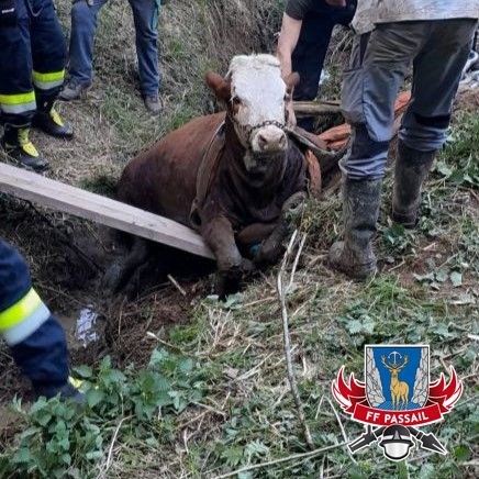 Grund der Alarmierung: Ein Kalb stürzte in einen Wassergraben und konnte sich nicht mehr selbst befreien.