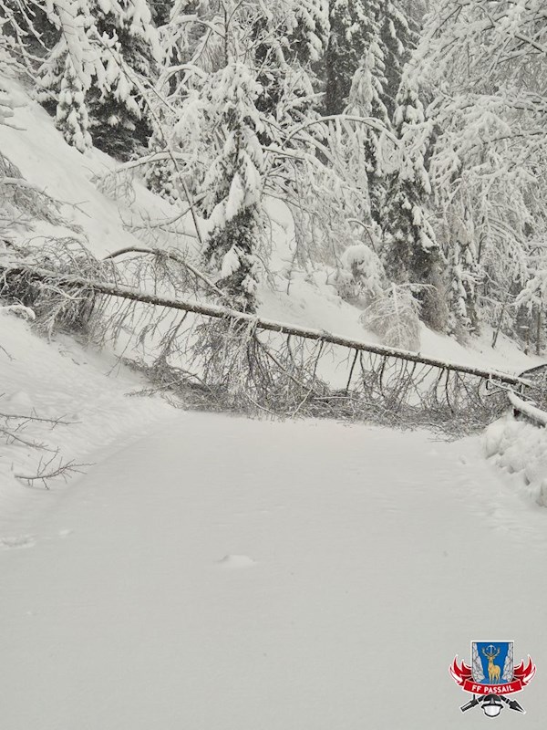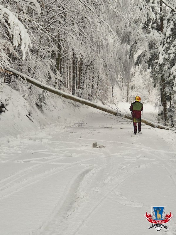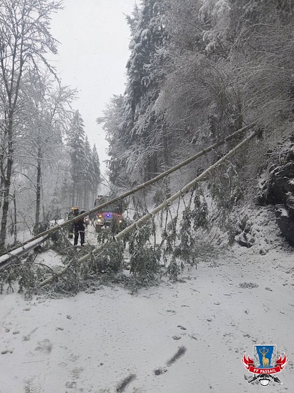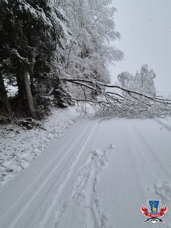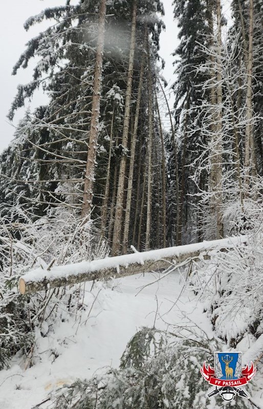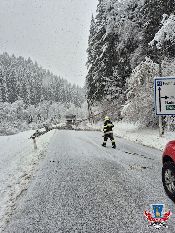 Grund der Alarmierung: Durch den Schneefall stürzten mehrmals Bäume auf die Fahrbahn.