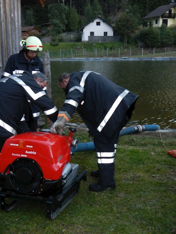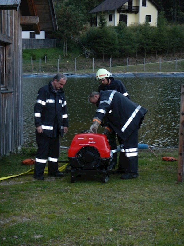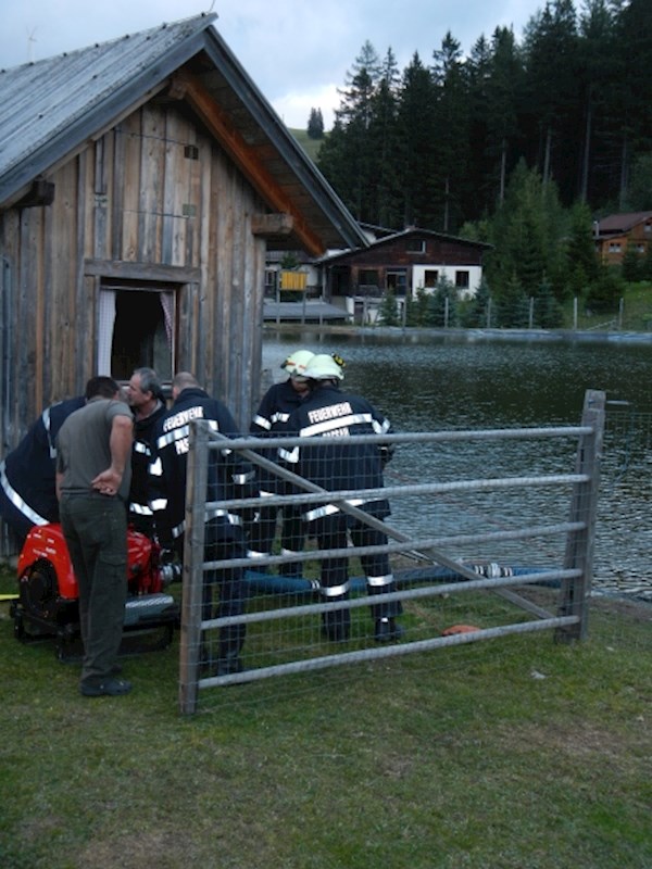 Beim Freizeitsee wurde mittels TS 12 angesaugt und eine Zubringleitung zum TLFA 4000 hergestellt.