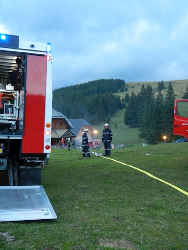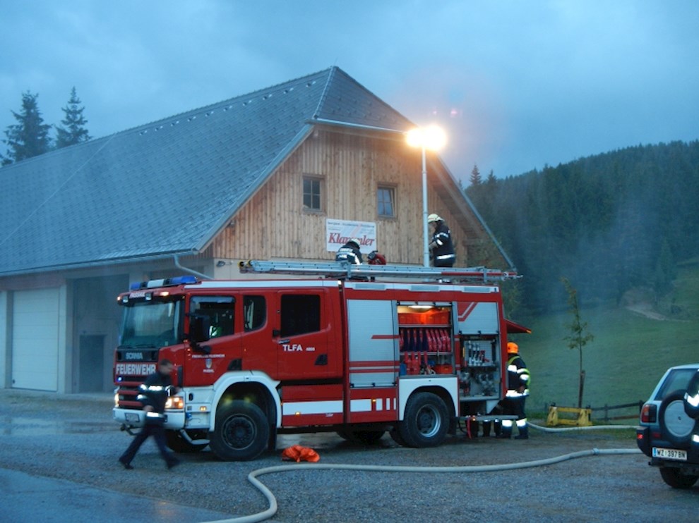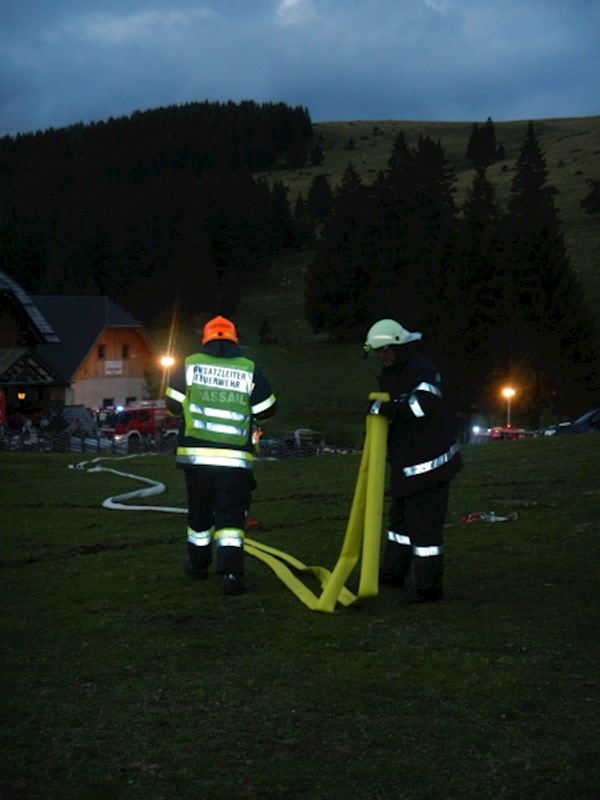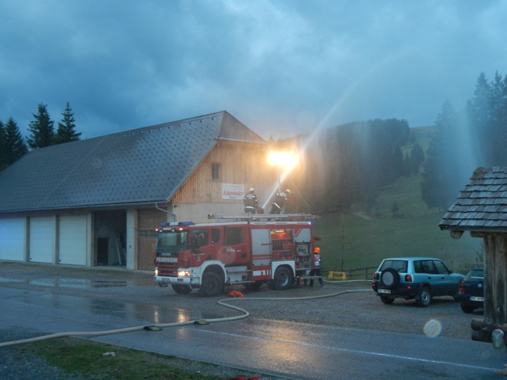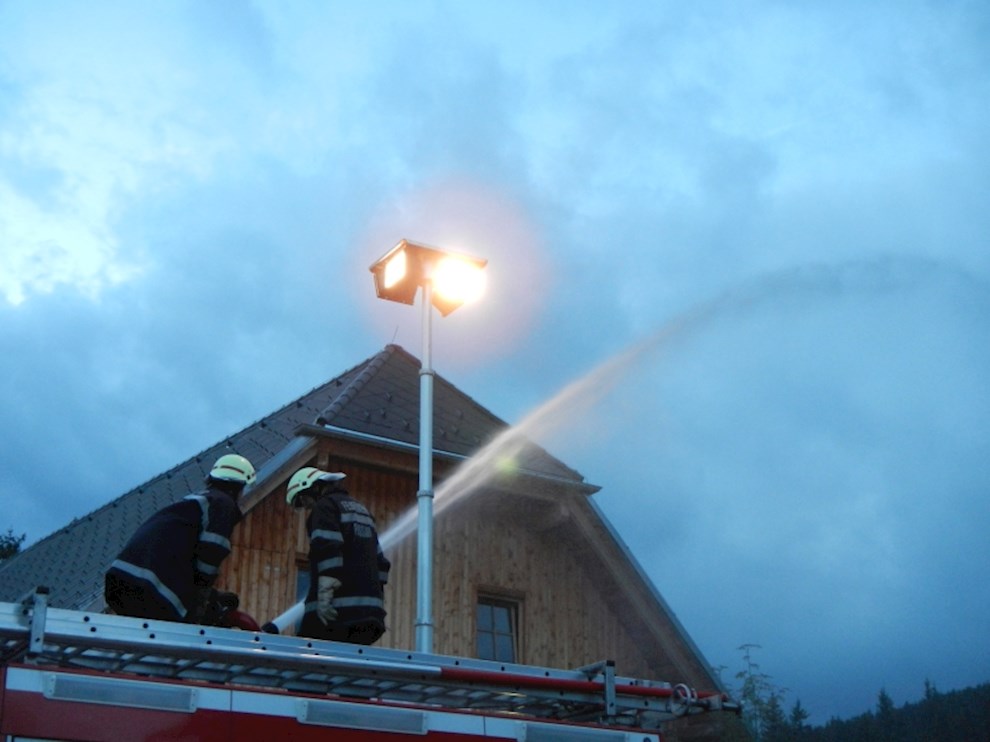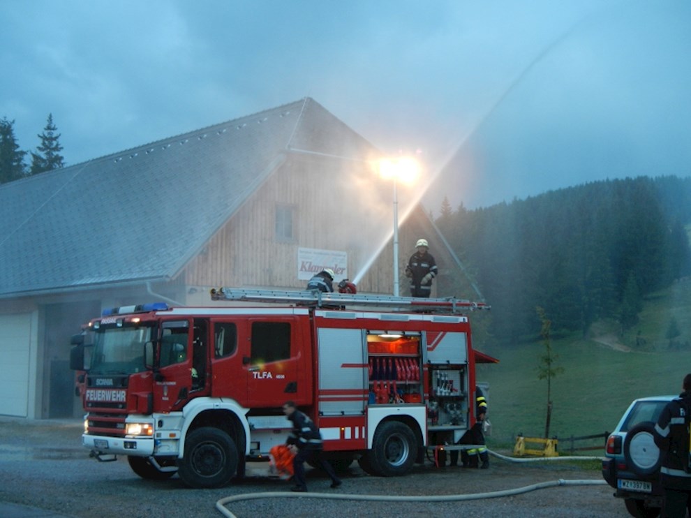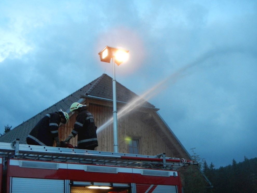 Die Eisstockhalle wurde mit einem C-Mehrzweckstrahlrohr und dem Wasserwerfer des TLFA 4000 und das Eingangshäuschen mit einem C-Hohlstrahlrohr angegriffen. Zusätzlich wurde ein B-Hydroschild installiert, welches den Schutz eines weiteren Nebengebäudes übernehmen soll.
