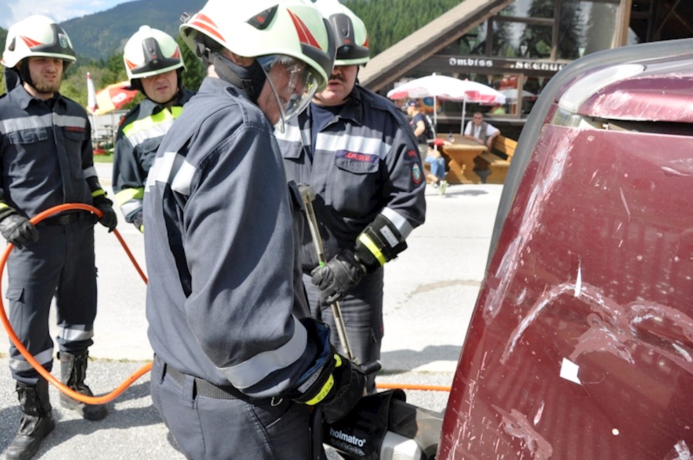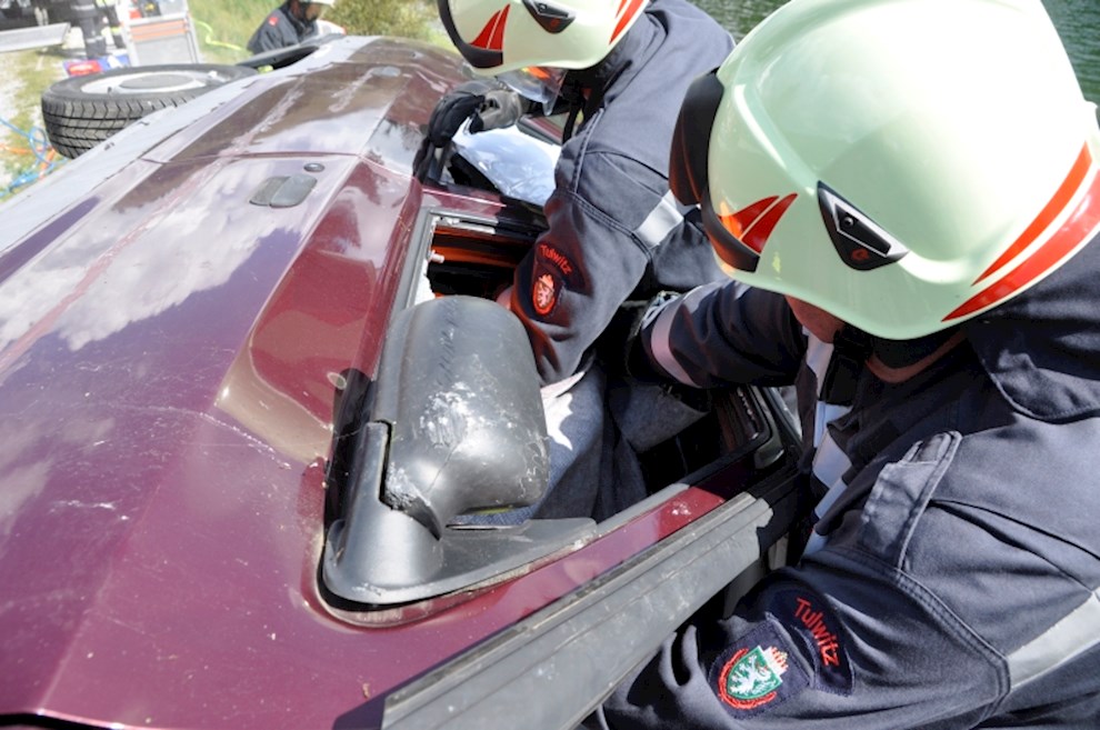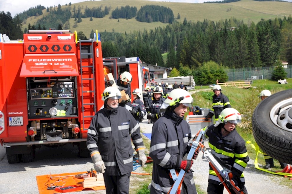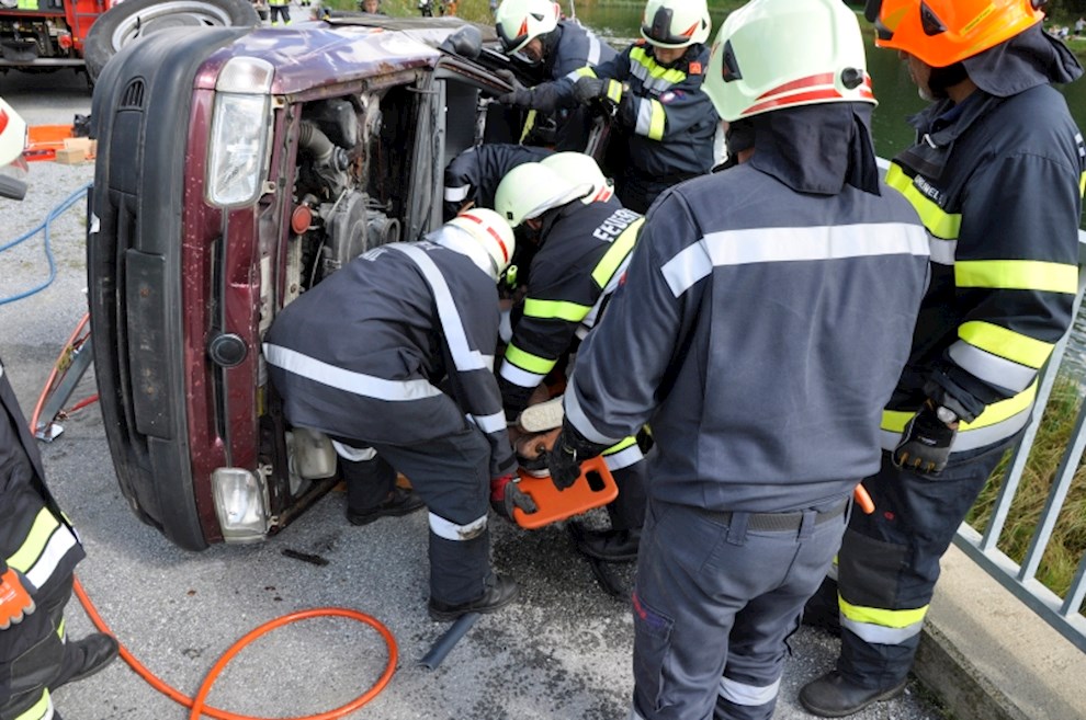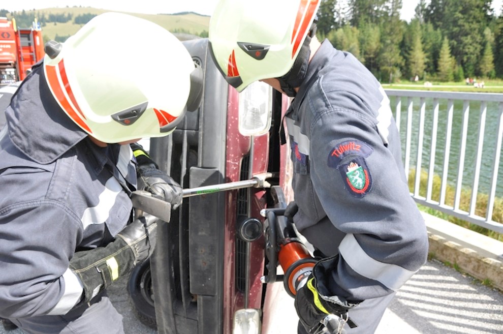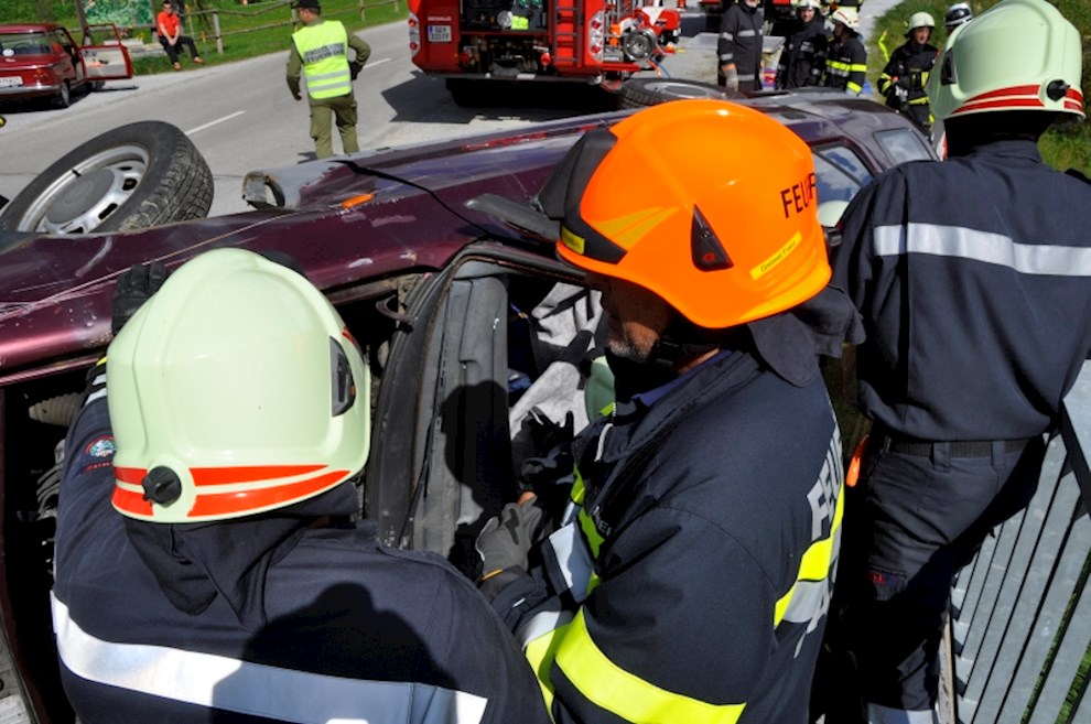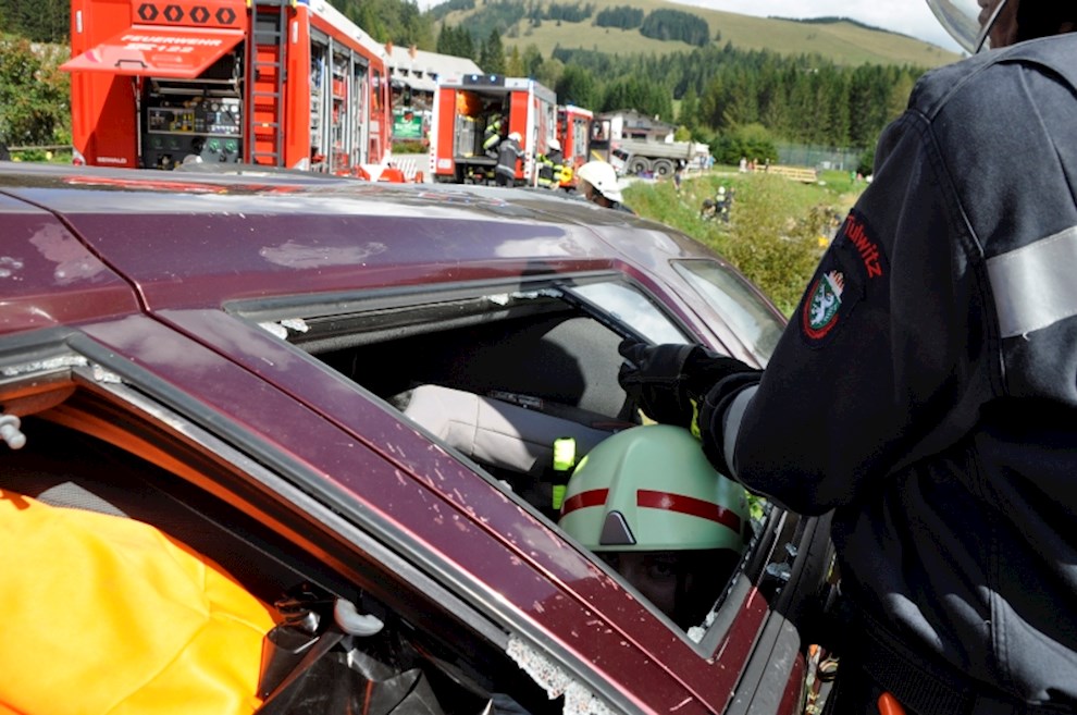 Gemeinsam mit der einladenden Feuerwehr Fladnitz/T. und der FF Tulwitz war die Übungsannahme "Verkehrsunfall mit eingeklemmter Person" zu bewältigen. Mit dem hydraulischen Rettungsgerät wurden insgesamt 4 Personen aus dem PKW befreit und versorgt.