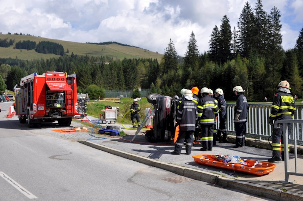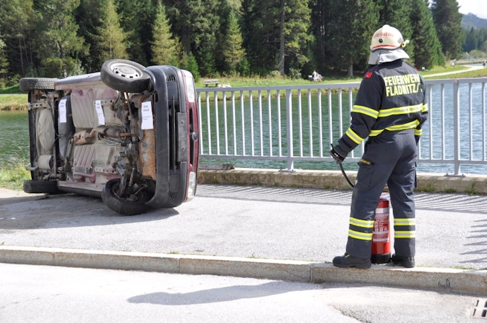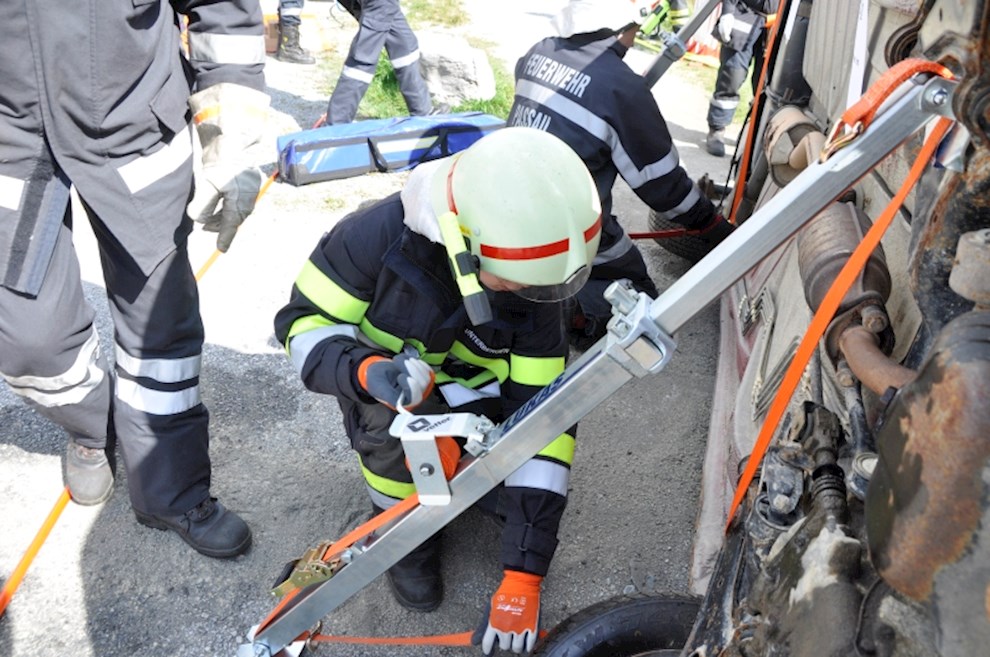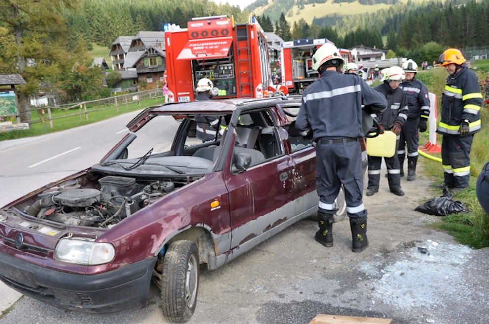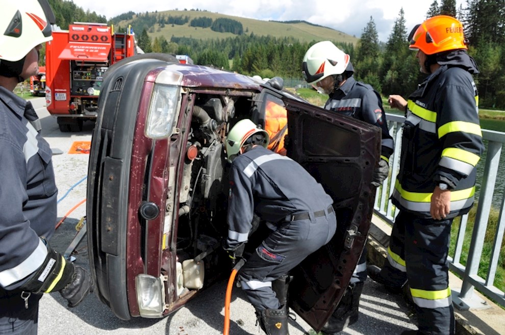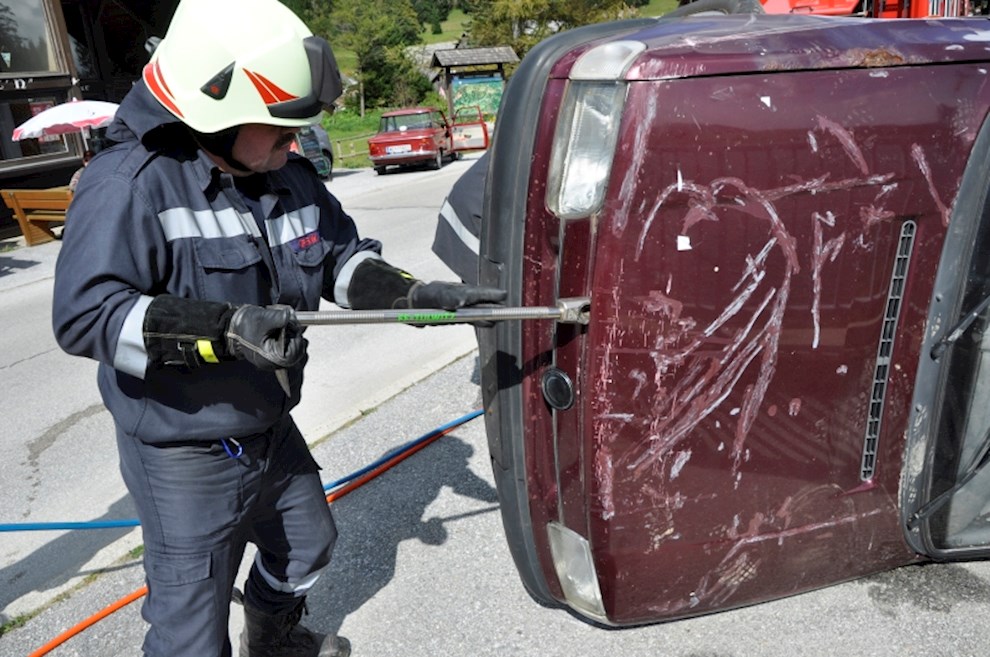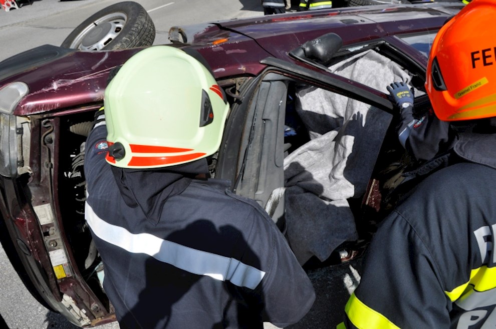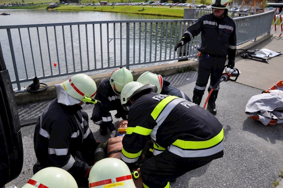 Gemeinsam mit der einladenden Feuerwehr Fladnitz/T. und der FF Tulwitz war die Übungsannahme "Verkehrsunfall mit eingeklemmter Person" zu bewältigen. Mit dem hydraulischen Rettungsgerät wurden insgesamt 4 Personen aus dem PKW befreit und versorgt.