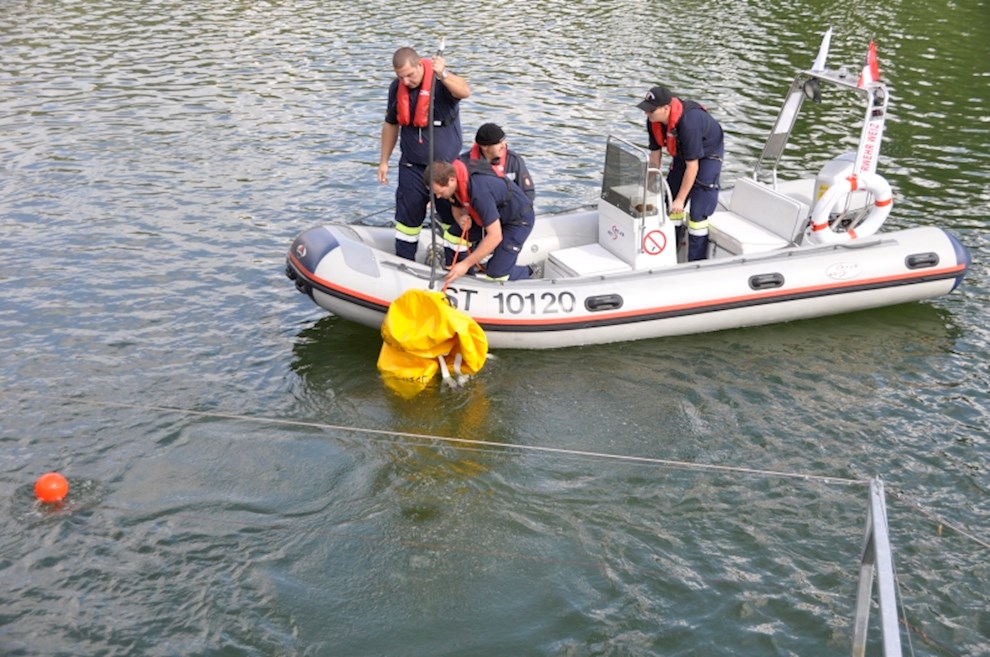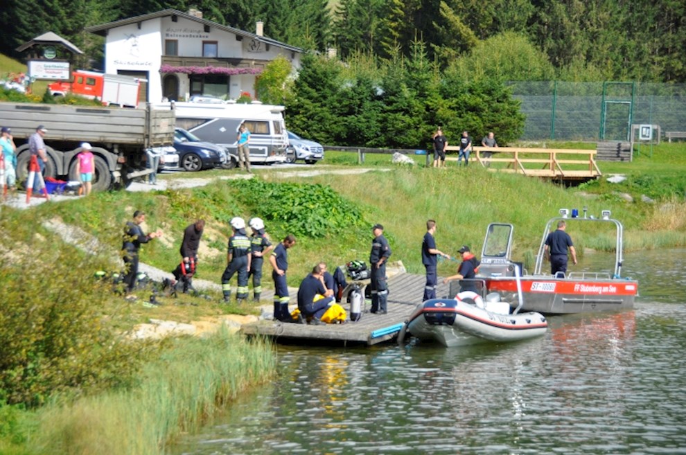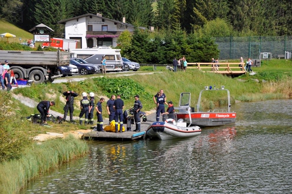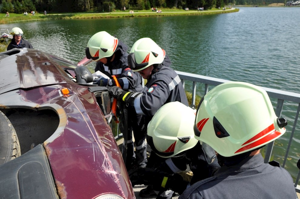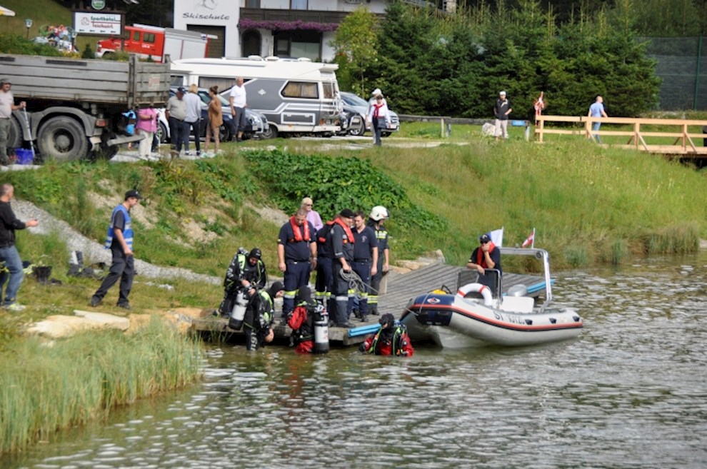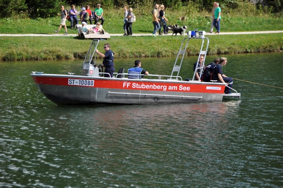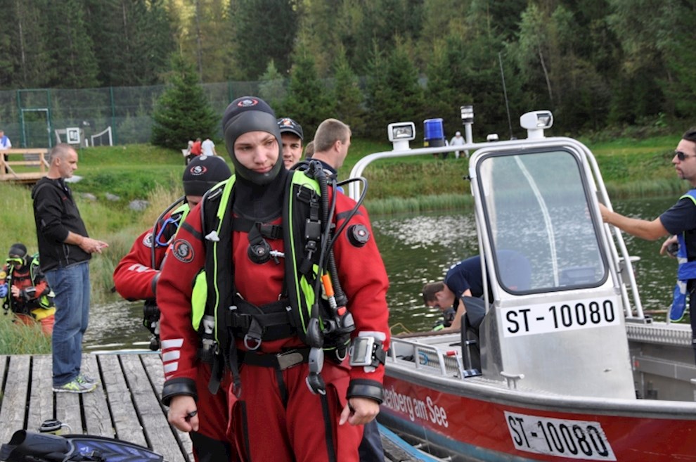 Zeitgleich mussten die Taucher des BFV Weiz, der FF Stubenberg/See und FF Fürstenfeld dem in den See gestürzten Motor (Übungsobjekt war ein Traktorgewicht) aus dem See tauchen.