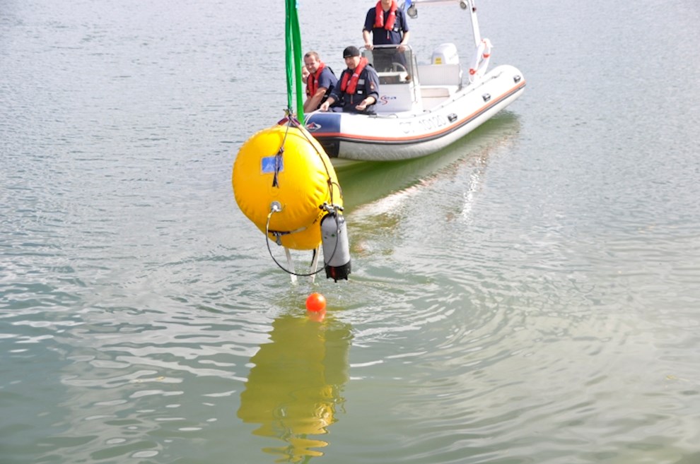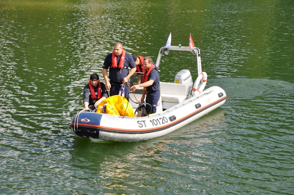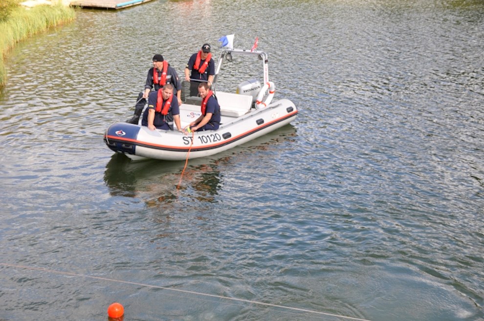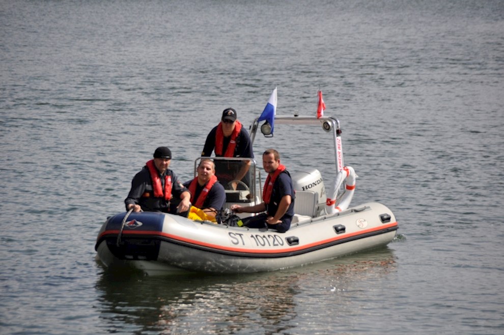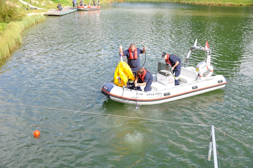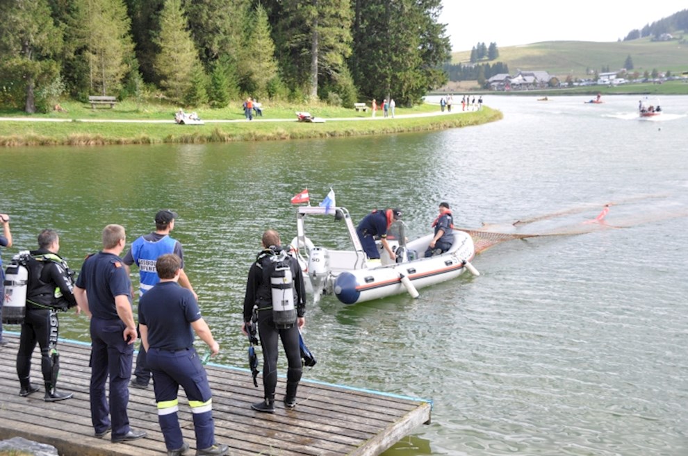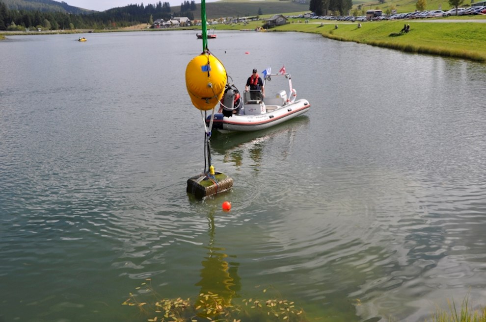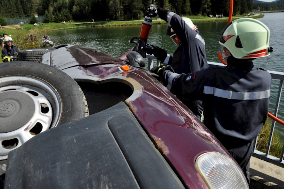 Zeitgleich mussten die Taucher des BFV Weiz, der FF Stubenberg/See und FF Fürstenfeld dem in den See gestürzten Motor (Übungsobjekt war ein Traktorgewicht) aus dem See tauchen.