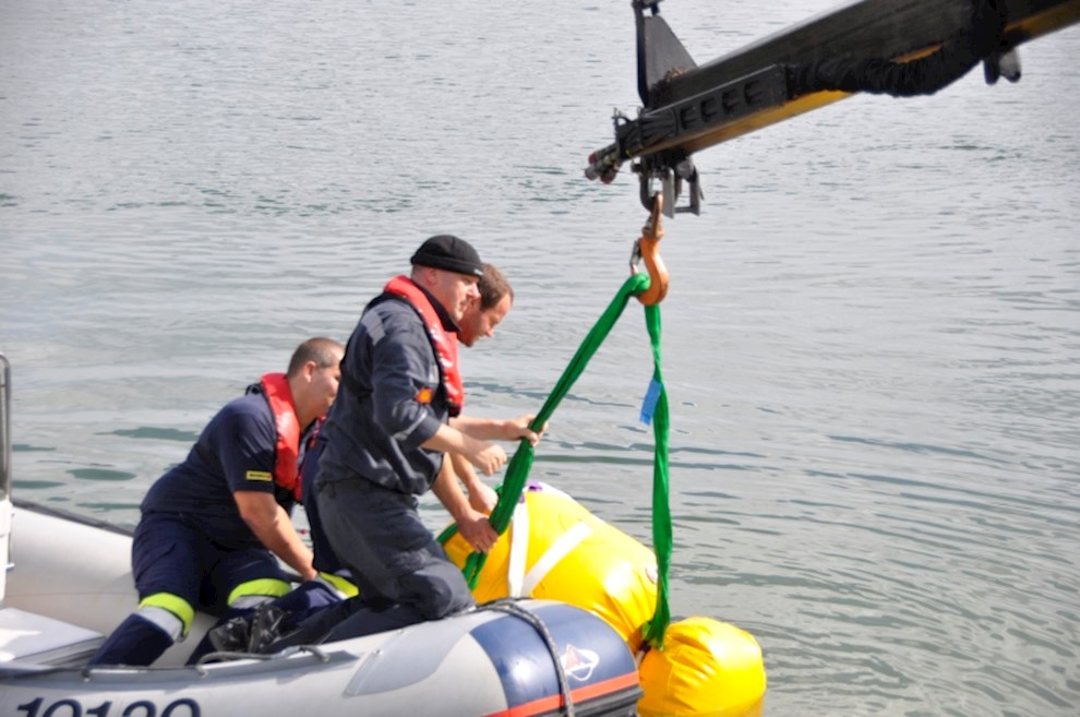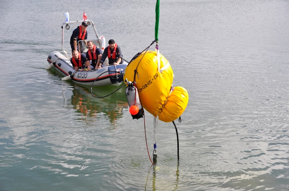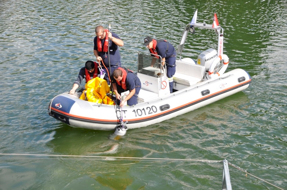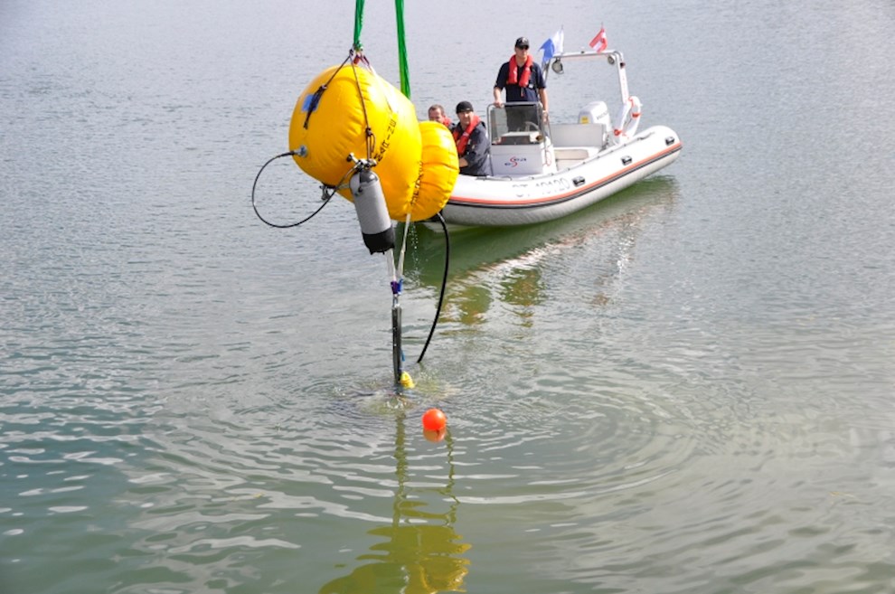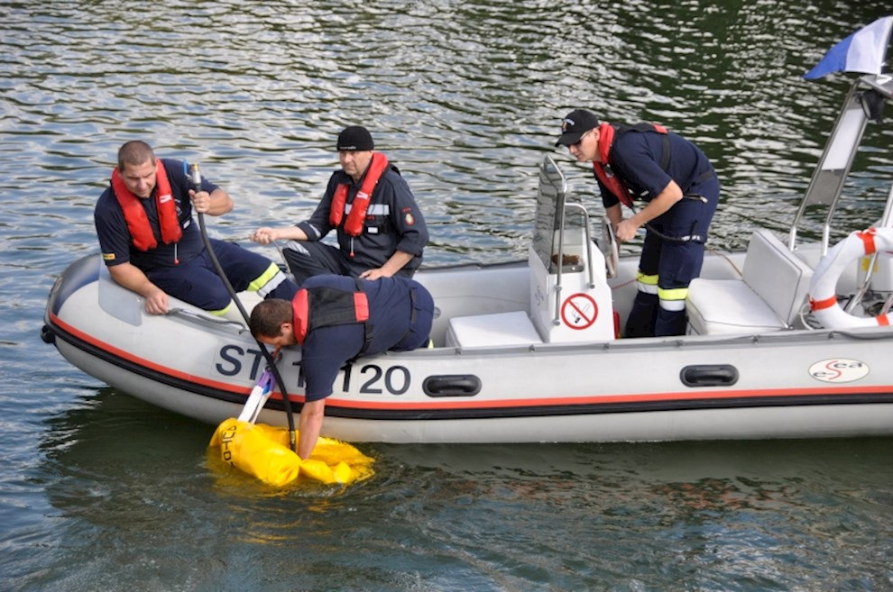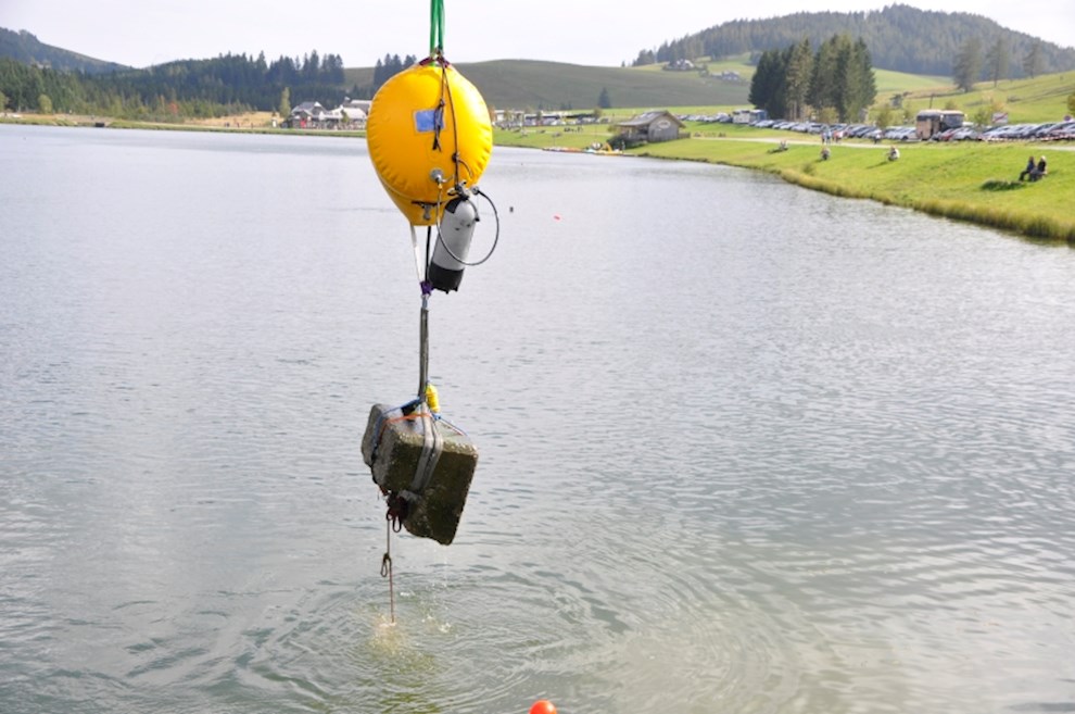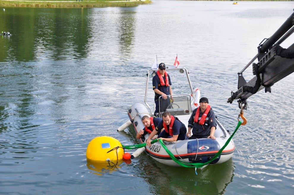 Zeitgleich mussten die Taucher des BFV Weiz, der FF Stubenberg/See und FF Fürstenfeld dem in den See gestürzten Motor (Übungsobjekt war ein Traktorgewicht) aus dem See tauchen.