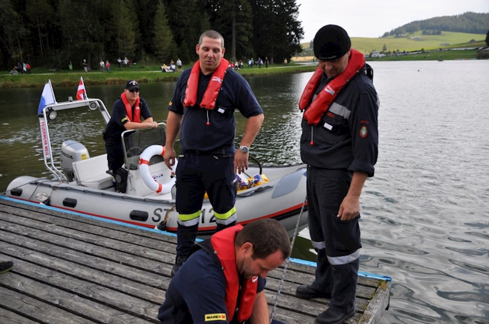 Am 20.9.2014 fand um 13 Uhr eine Mehrwehrenübung und Wasserdienstübung auf der Teichalm beim Teichalmsee statt, bei der wir mit dem KDO, RFA und 9 Mann teilnahmen.
