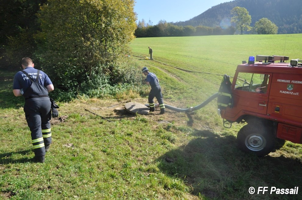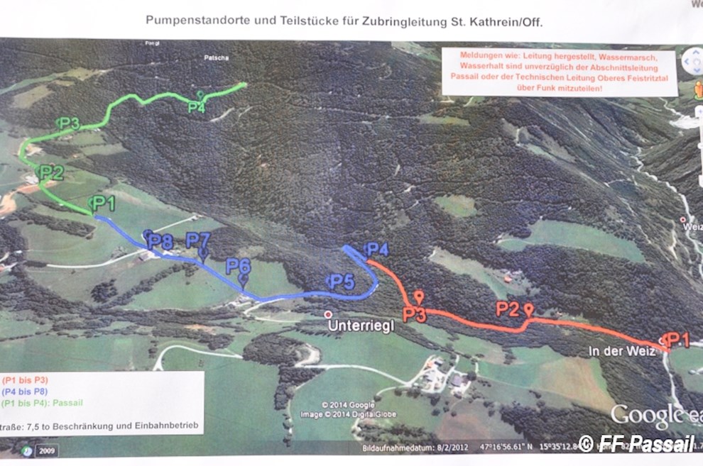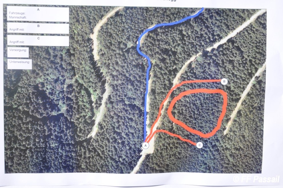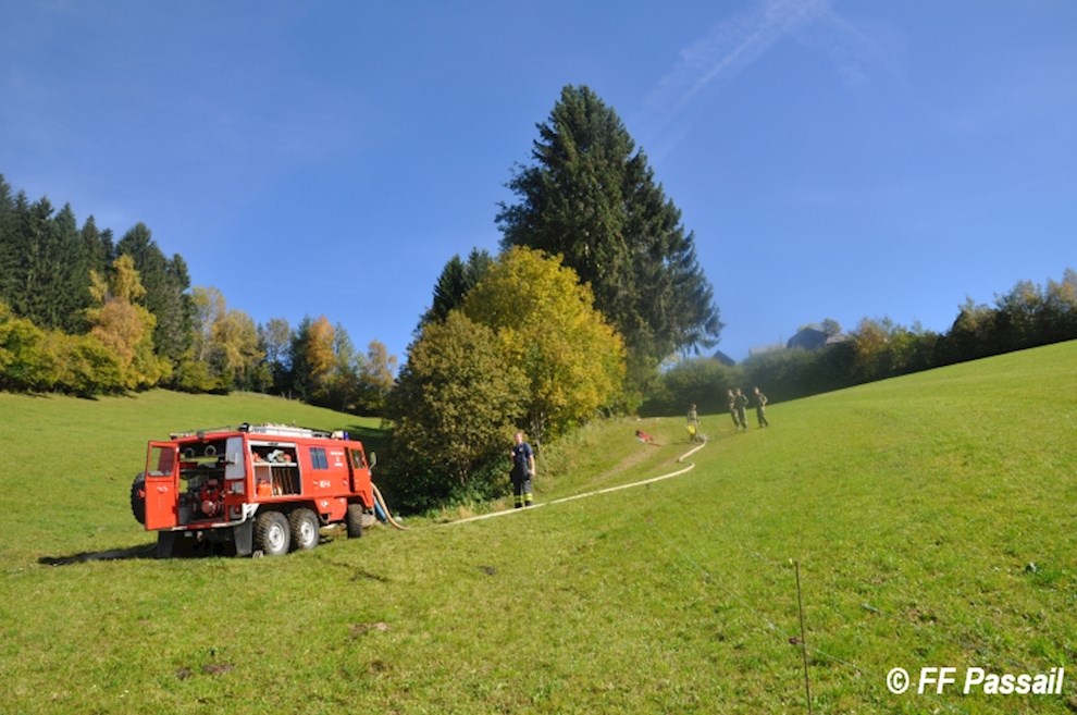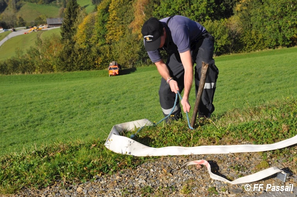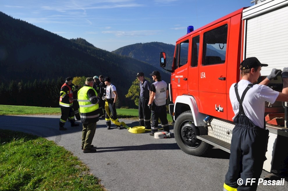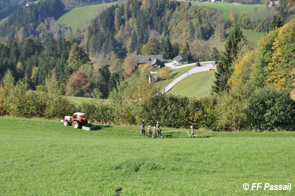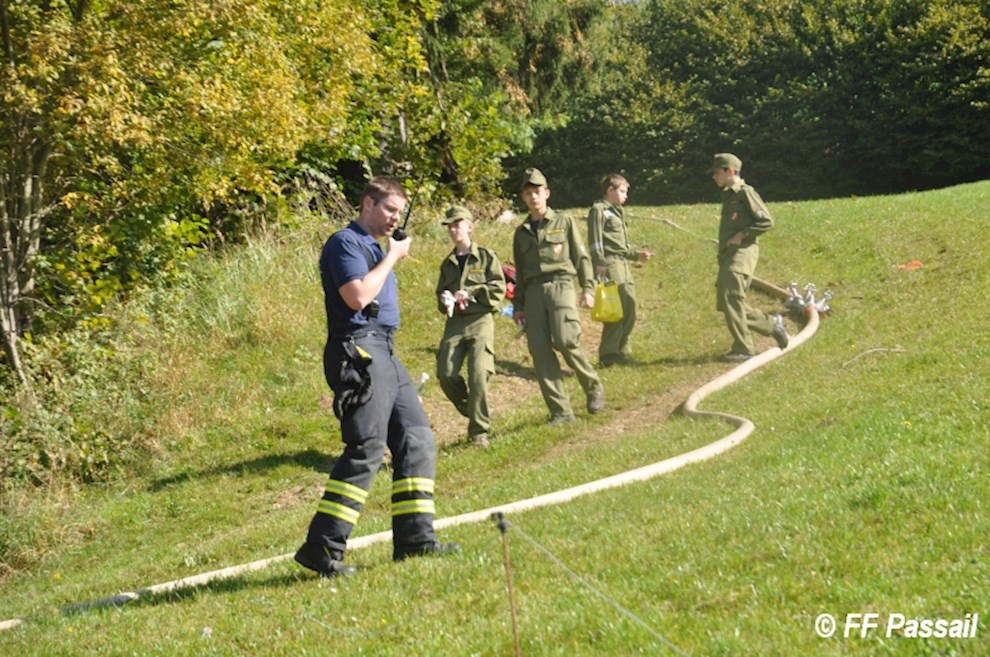 Die Übung begann um 9 Uhr mit der Alarmierung der Feuerwehren Landscha, St. Kathrein/Off. und Weiz, die nach dem Eintreffen am Einsatzort die Abschnitte Passail und Weiz nachforderten. Die Aufgabe des Abschnitts Passail war die Herstellung einer 1500 m langen Zubringleitung vom Löschteich Raith in Greith bis zur Brandstelle. Zusätzlich beauftragte die Einsatzleitung St. Kathrein/Off. die FF Passail damit, die Abschnittsleitung zu übernehmen.