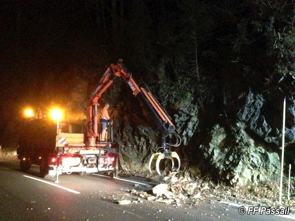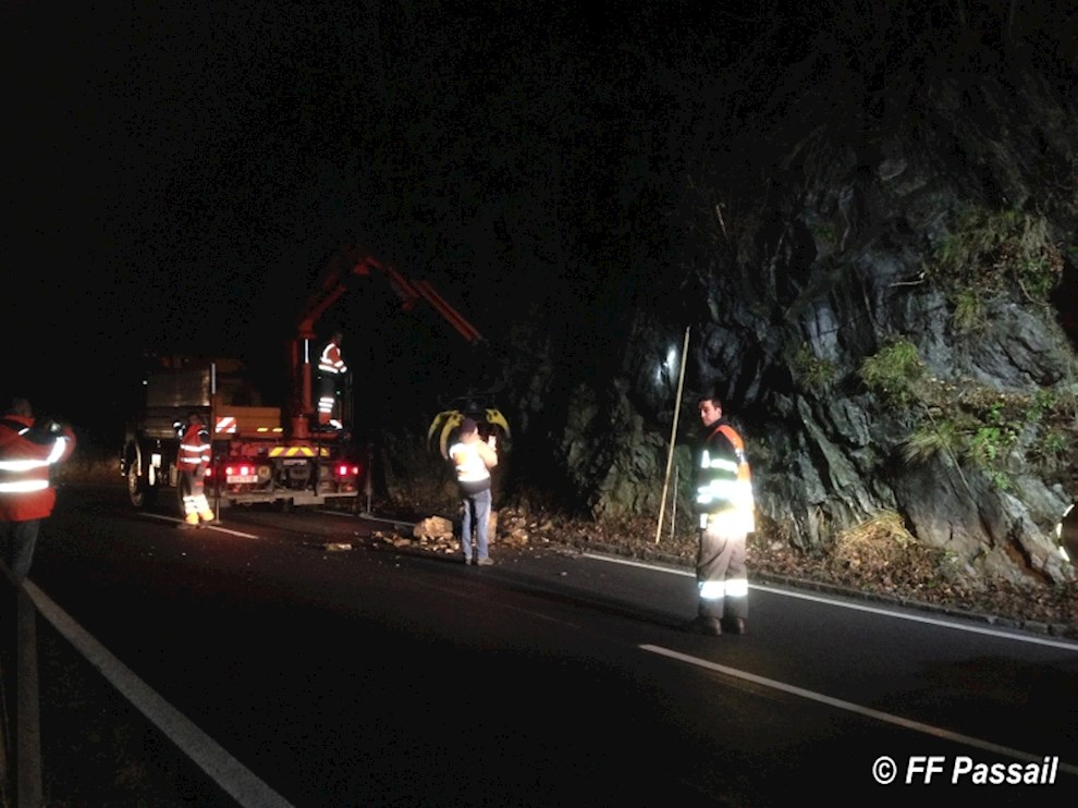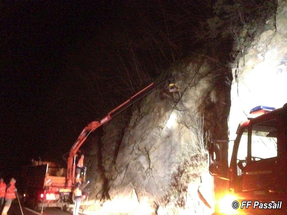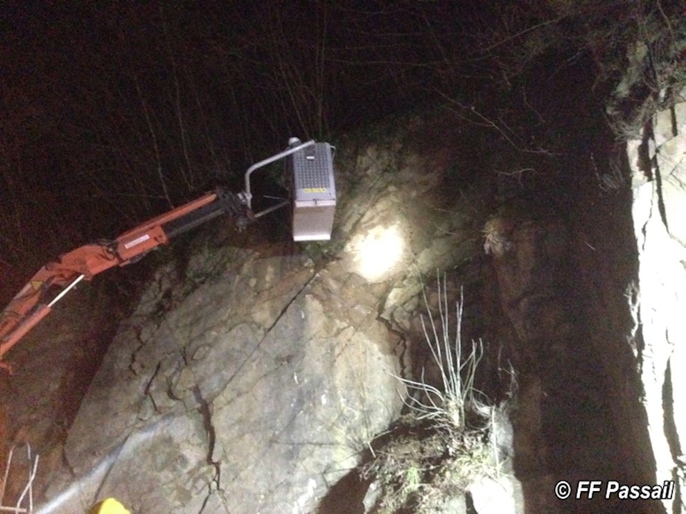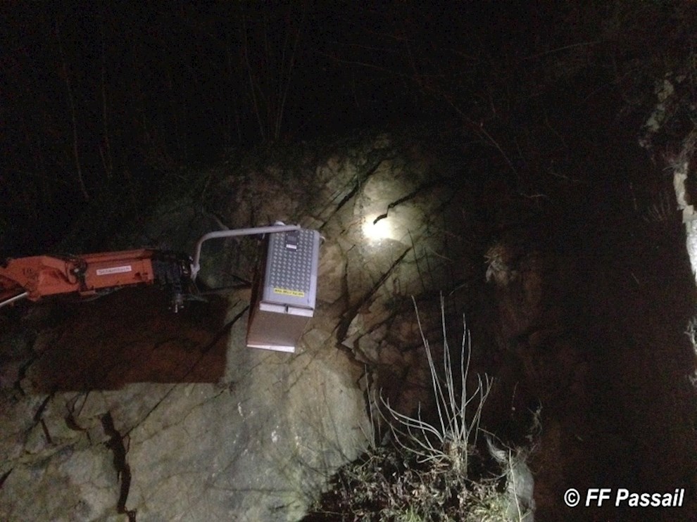 Am 15.12.2014 wurden wir um ca. 17 Uhr von der Straßenmeisterei Weiz angefordert, um ihnen eine großräumige Beleuchtung für einen Geologen herzustellen. Der Geologe begutachtete ein kurzes Teilstück der B64 im Bereich Kreuzwirt, da sich von der Felswand immer wieder kleine Felsbrocken lösten. Er machte zwei gefährdete Stellen aus, die danach von der Straßenmeisterei entschärft wurden. Die Felsen wurden mit zwei LKW mit Kränen unter Aufsicht abgetragen und abtransportiert. Die B64 musste dazu immer wieder kurz gesperrt werden.