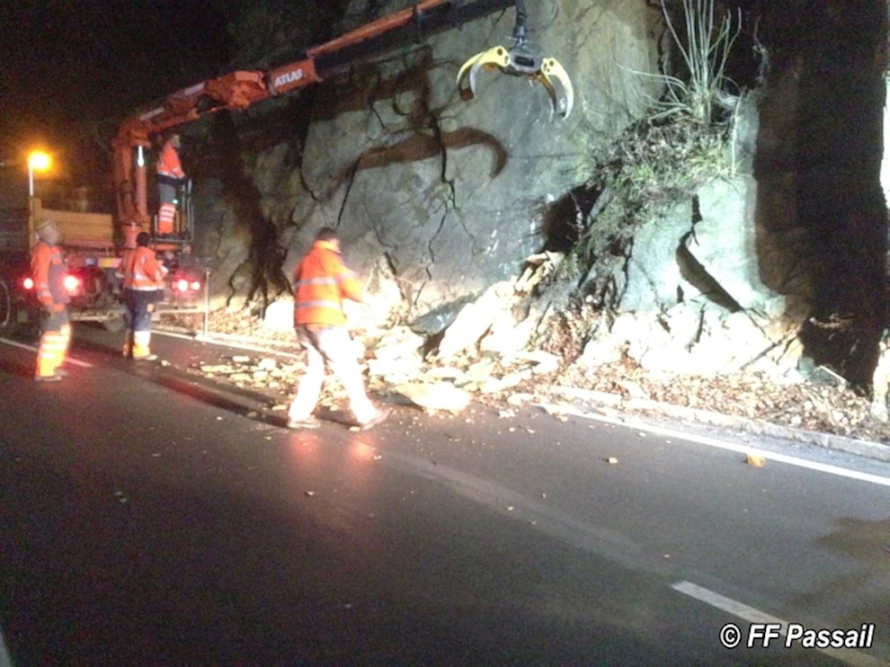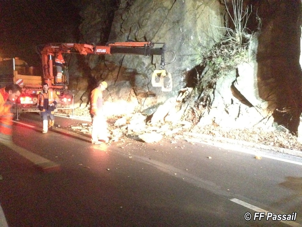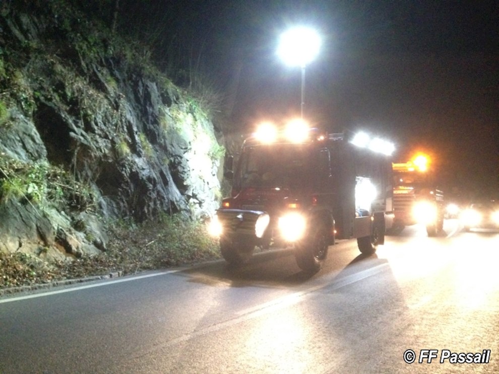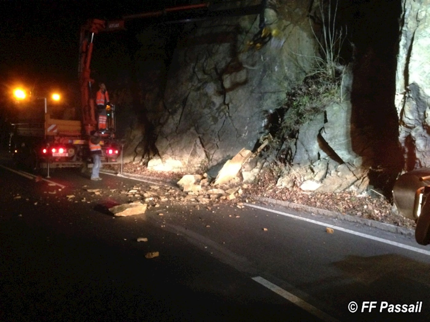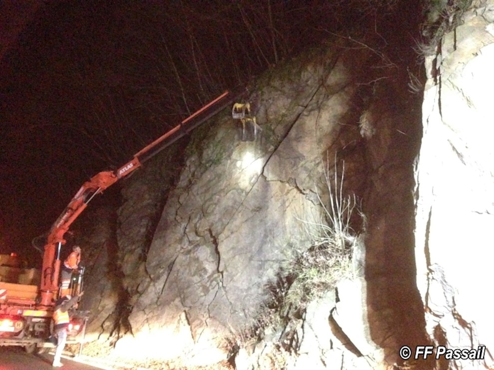 Am 15.12.2014 wurden wir um ca. 17 Uhr von der Straßenmeisterei Weiz angefordert, um ihnen eine großräumige Beleuchtung für einen Geologen herzustellen. Der Geologe begutachtete ein kurzes Teilstück der B64 im Bereich Kreuzwirt, da sich von der Felswand immer wieder kleine Felsbrocken lösten. Er machte zwei gefährdete Stellen aus, die danach von der Straßenmeisterei entschärft wurden. Die Felsen wurden mit zwei LKW mit Kränen unter Aufsicht abgetragen und abtransportiert. Die B64 musste dazu immer wieder kurz gesperrt werden.
