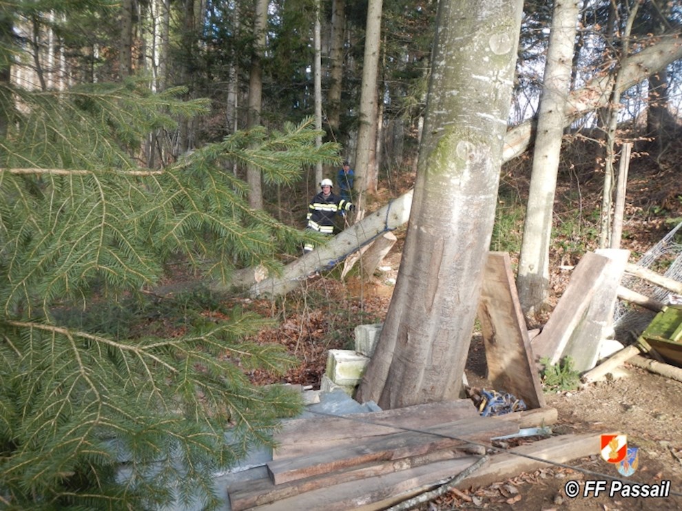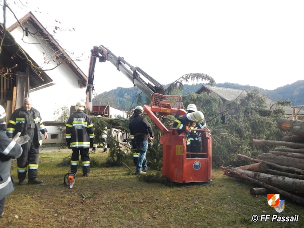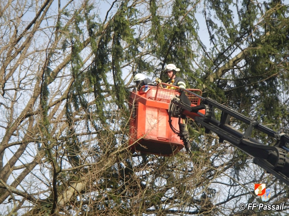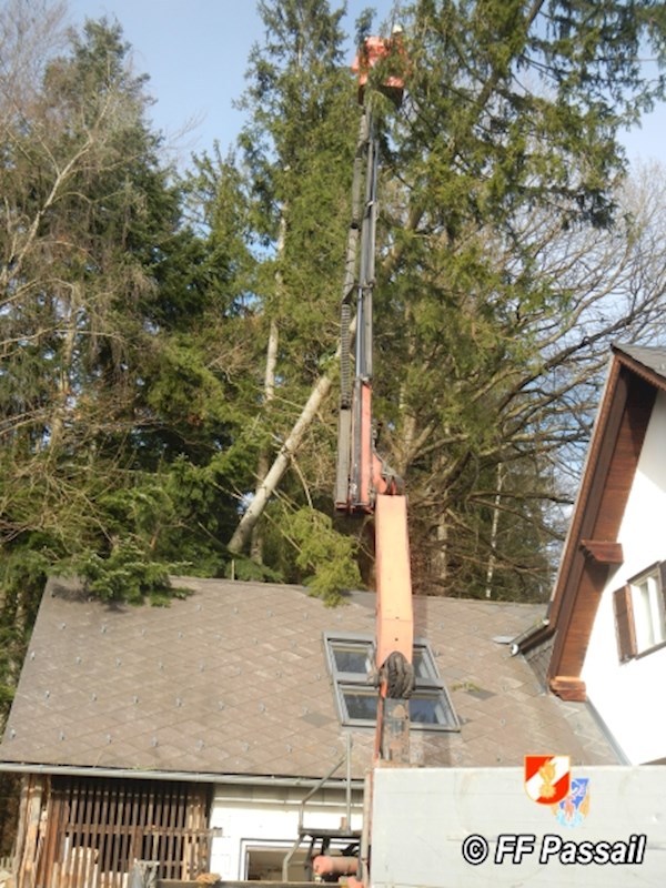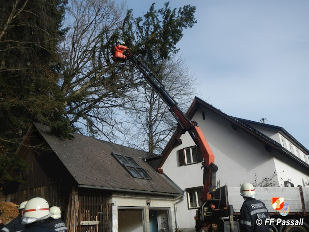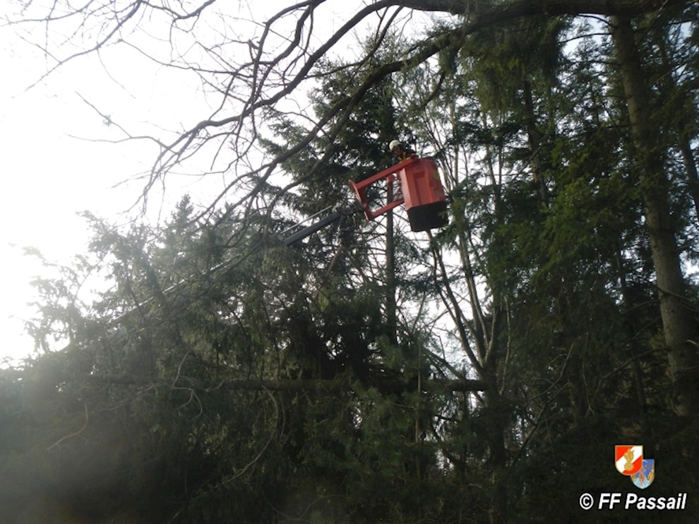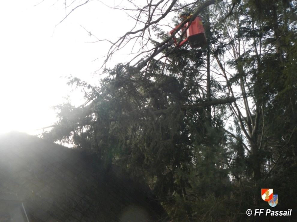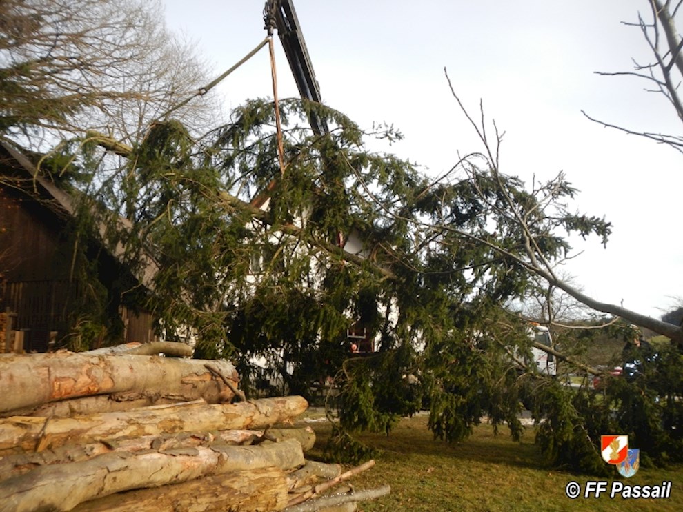 Am 10.1.2015 wurde die FF Passail um 11:34 Uhr per Sirene zu einer Baumbergung in Auen alarmiert. Ein Baum drohte auf ein Haus zu stürzen.