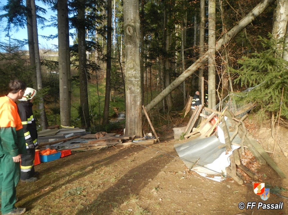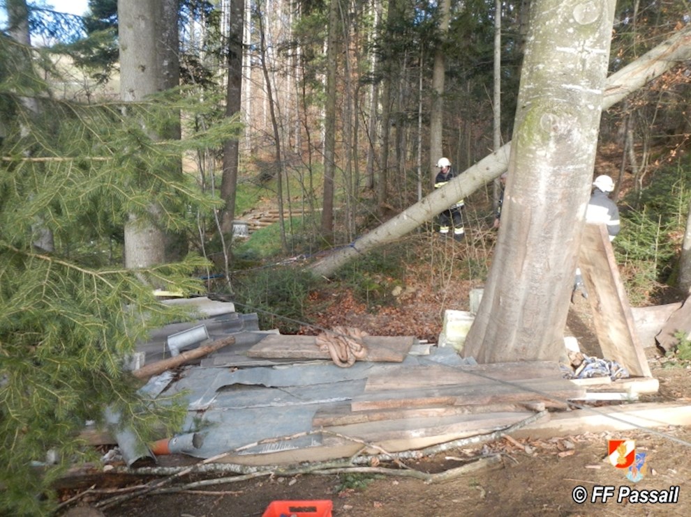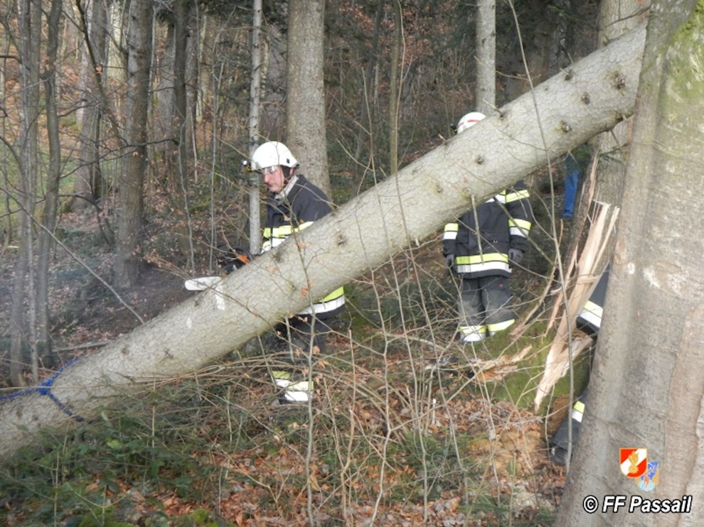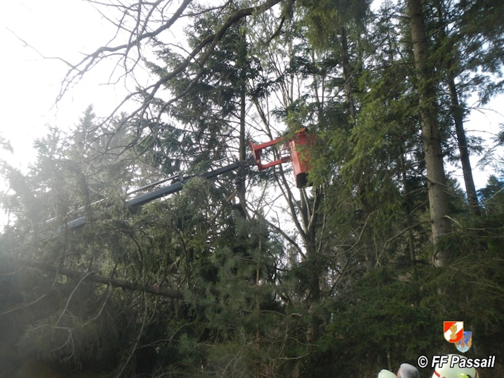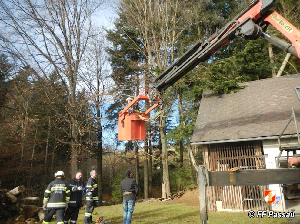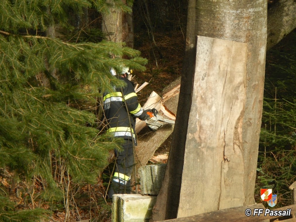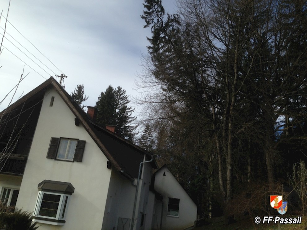 Am 10.1.2015 wurde die FF Passail um 11:34 Uhr per Sirene zu einer Baumbergung in Auen alarmiert. Ein Baum drohte auf ein Haus zu stürzen.
