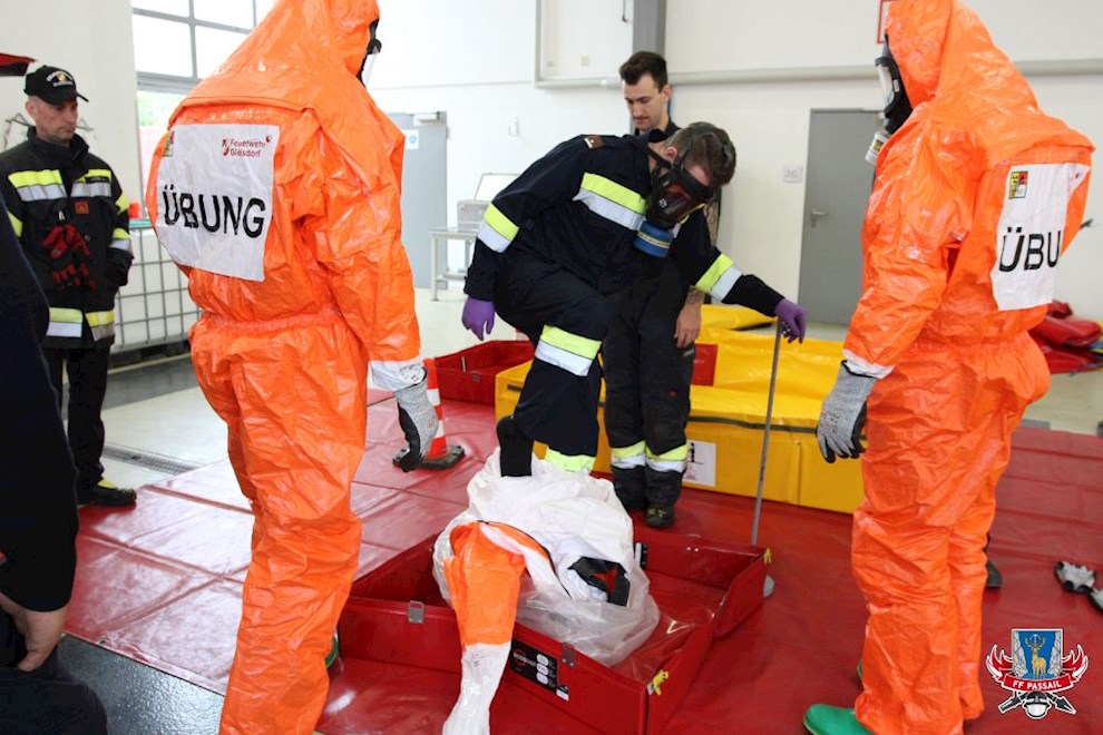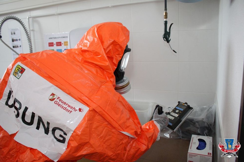 Am 13. Mai lud die DEKO-Einheit der Stadtfeuerwehr Gleisdorf zur gemeinsamen Übung mit der Strahlenschutzgruppe des Bereichsfeuerwehrverbandes Weiz ein. Nach einer kurzen Begrüßung durch den Hausherrn und Gefahrgutbeauftragten des BFV Weiz HBI Jürgen Hofer und den Bereichsstrahlenschutzbeauftragten BI d.F. Kevin Unterberger gab es einen Theorieteil über die wichtigsten Grundlagen im Strahlenschutz. LM d.F. Eric Buder (FF Gleisdorf) wies die Übungsteilnehmer danach in die Durchführung von Personendekontaminationen ein. Anschließend wurde die DEKO-Straße von allen Teilnehmern gemeinsam aufgebaut und die Funktion der verschiedenen Bereiche erklärt.