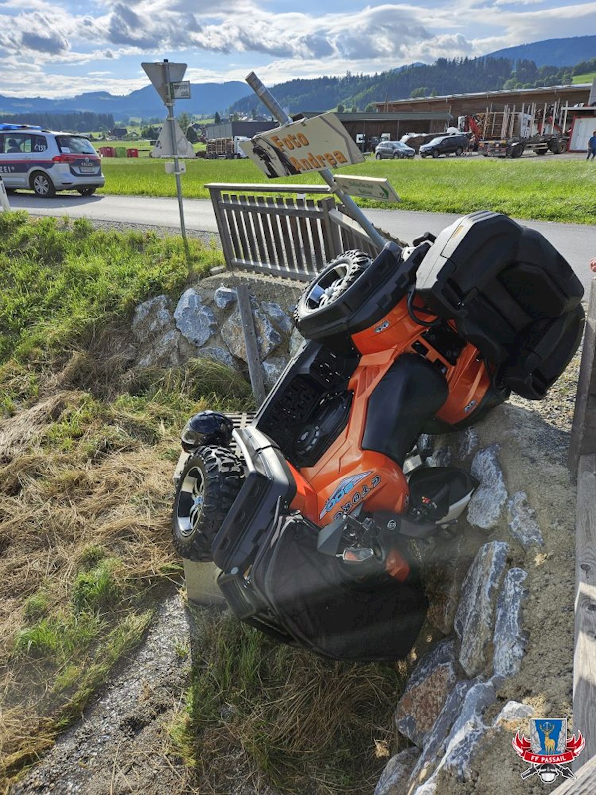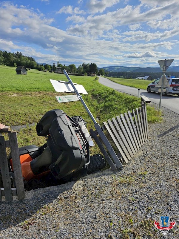 Grund der Alarmierung: Ein Quad kam von der Straße ab, durchbrach ein Geländer und fuhr in den Straßengraben.