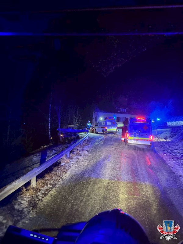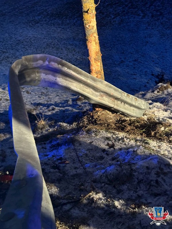 Grund der Alarmierung: Aufgrund von Glatteis kam ein PKW ins Rutschen und prallte gegen eine Leitschiene.