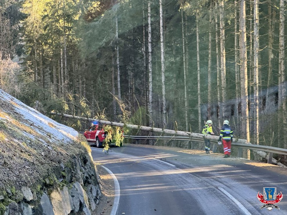 Grund der Alarmierung: Mehrere Bäume stürzten über die Straße und mussten entfernt werden.
