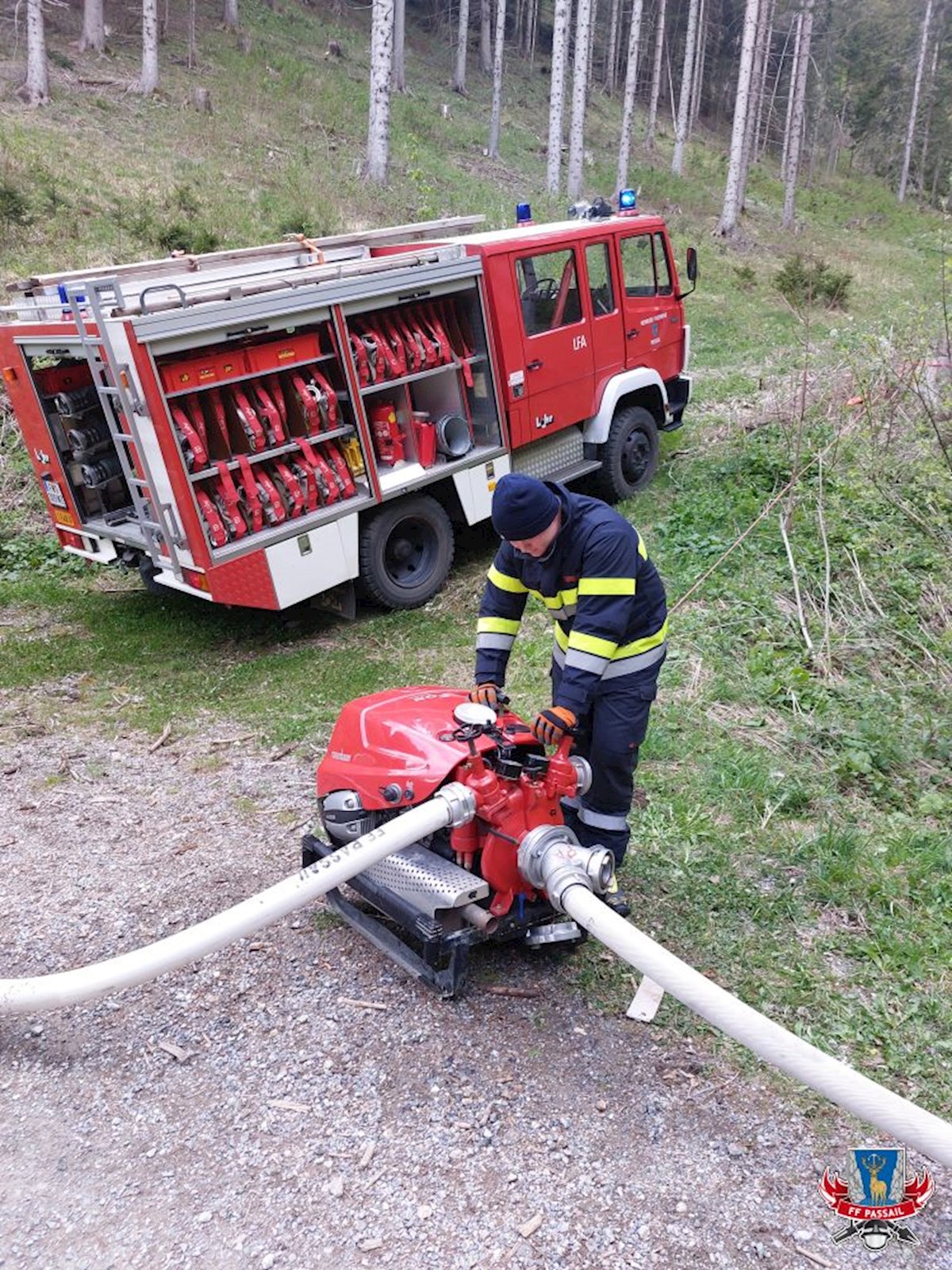 Durch die Feuerwehren Passail, Fladnitz/T., St. Kathrein/Off., Plenzengreith, Neudorf bei Passail und Heilbrunn wurden mit 50 Personen insgesamt 7 Tragkraftspritzen entlang des Wanderwegs stationiert.