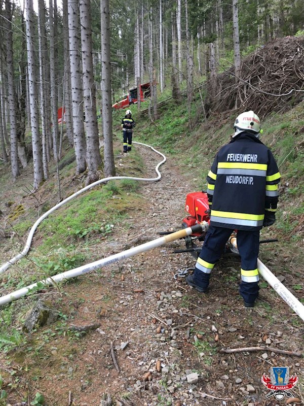 Die Zubringleitung, die von der Waldmühle entlang der Raab bis zum Einsatzort verlegt wurde, hatte eine Länge von 1100 Meter und überwindete dabei ca. 150 Höhenmeter in steilem Gelände. Weiters wurden eine mobile Einsatzleitung eingerichtet und das neue faltbare Löschwasserbecken der FF Plenzengreith als Reserve getestet.