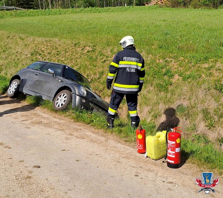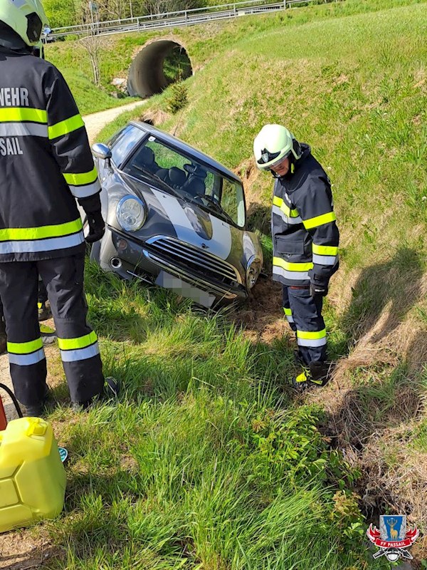 Grund der Alarmierung: Ein PKW kam von der Straße ab und landete weiter entfernt in einem Graben. Der Lenker wurde dabei leicht verletzt im Fahrzeug eingeschlossen.