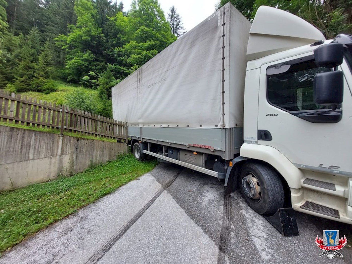 Grund der Alarmierung: Ein LKW blieb während einem Wendemanöver stecken.