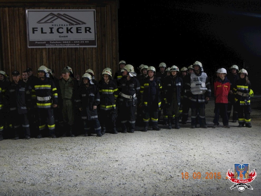Am Freitag, dem 18.9.2015, fand bei der Firma Holzbau Flicker in Auen die Abschnittsatemschutzübung 2015 des Abschnittes 2 Passail statt. Die Atemschutztrupps der Feuerwehren Fladnitz/T., Heilbrunn, Neudorf/P., Passail, Plenzengreith und St. Kathrein/Off. wurden vom Atemschutzsammelplatz auf jeweils eine von insgesamt drei Stationen aufgeteilt. Im Laufe der Übung konnten alle Trupps die Stationen von Menschenrettung, Brandbekämpfung bis hin zum Erkennen und Bergen einer Gasflasche erfolgreich durchlaufen. Nach einer kurzen Schlussbesprechung und einer Jause im Rüsthaus Passail wurde die Übung abgeschlossen.