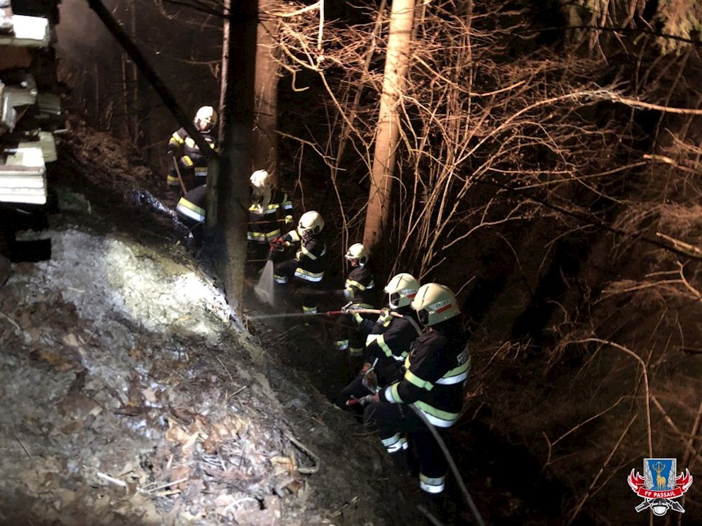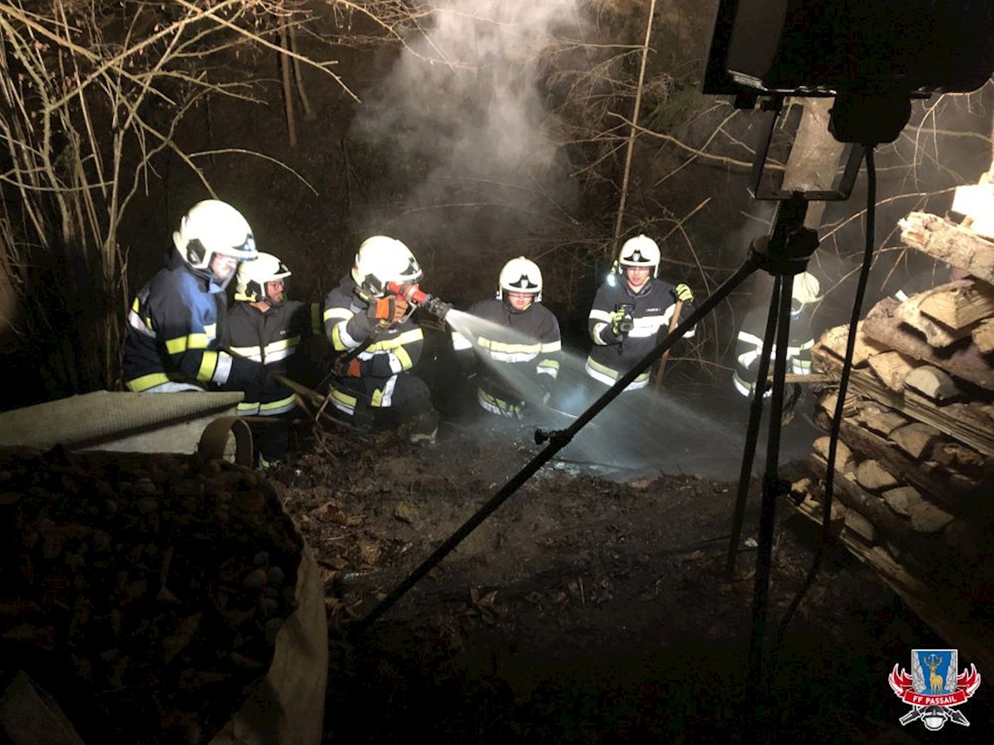 Tätigkeiten: Absichern und Ausleuchten der Einsatzstelle, Löschen des Brandes mit HD-Rohr, Umgraben des Waldbodens, Kontrolle mittels Wärmebildkamera