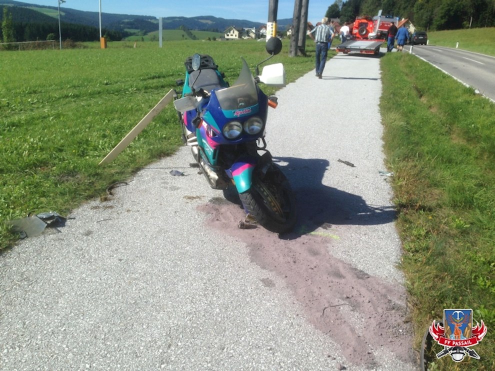 Am 22.9.2015 wurden wir um 10:39 Uhr per stillem Alarm zu Ölbindearbeiten auf der L357 im Bereich Freizeitzentrum gerufen. Am Einsatzort angekommen stellte sich aber heraus, dass sich zuvor ein schwerer Unfall zwischen einem PKW und einem Motorrad ereignete. Der Motorradfahrer wurde mit schweren Verletzungen mit dem Notarzthubschrauber C12 in ein Krankenhaus gebracht.