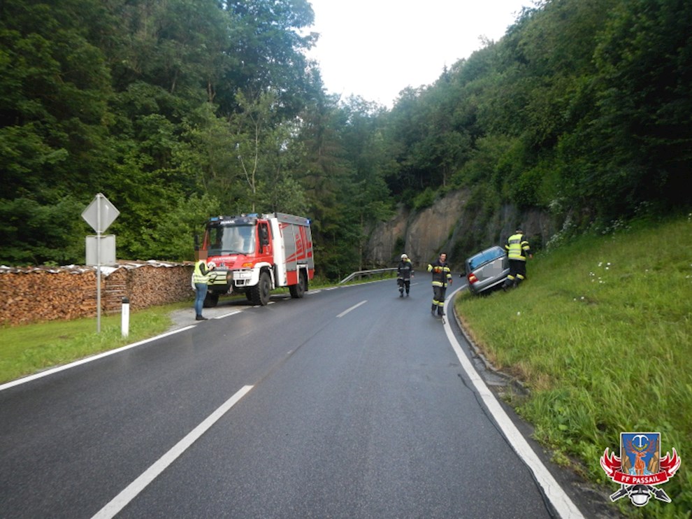 Am 17.6.2016 wurden wir um 6:42 Uhr mittels stillem Alarm zu einer PKW-Bergung auf der B64 Höhe Lammerriegl alarmiert. Durch eine geringe Menge ausgeflossenen Diesel ist ein PKW ins Schleudern geraten und kam auf einer Böschung zu stehen. Die Lenkerin blieb dabei unverletzt.