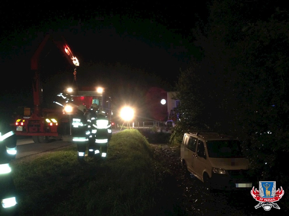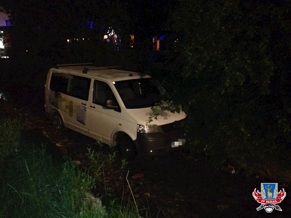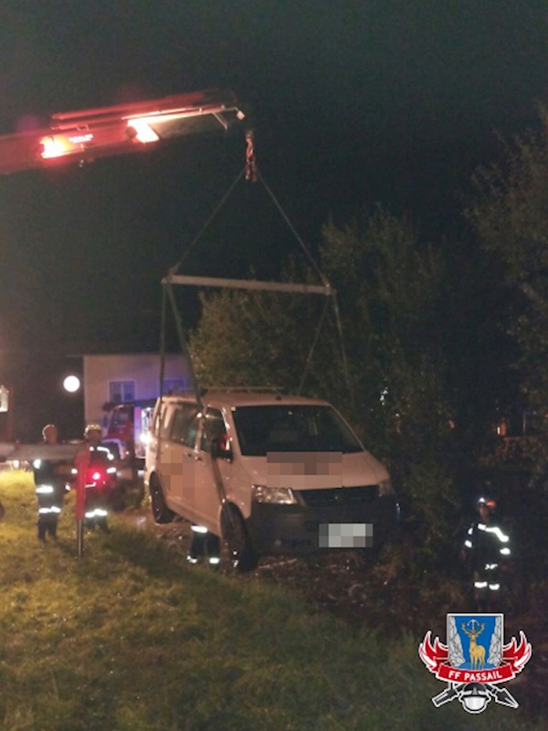 Zu einem zweiten Einsatz am 13.8.2016 wurden wir um 21:10 Uhr gerufen. Ein Kleinbus ist auf der Gaasgrabenstraße auf Höhe GH Schober von der Straße abgekommen und steht im Bachbett. Der Kleinbus wurde dabei nicht beschädigt.
