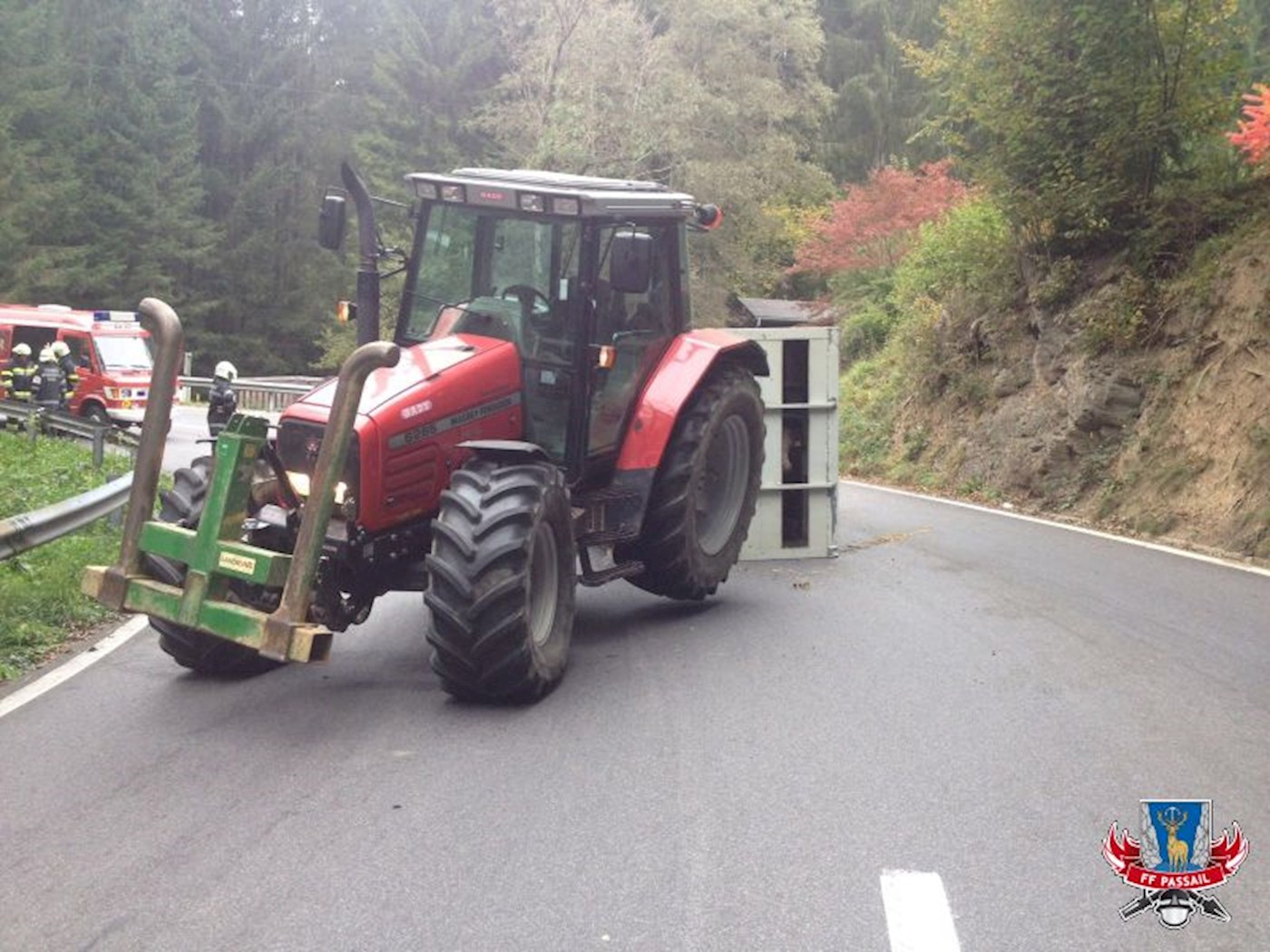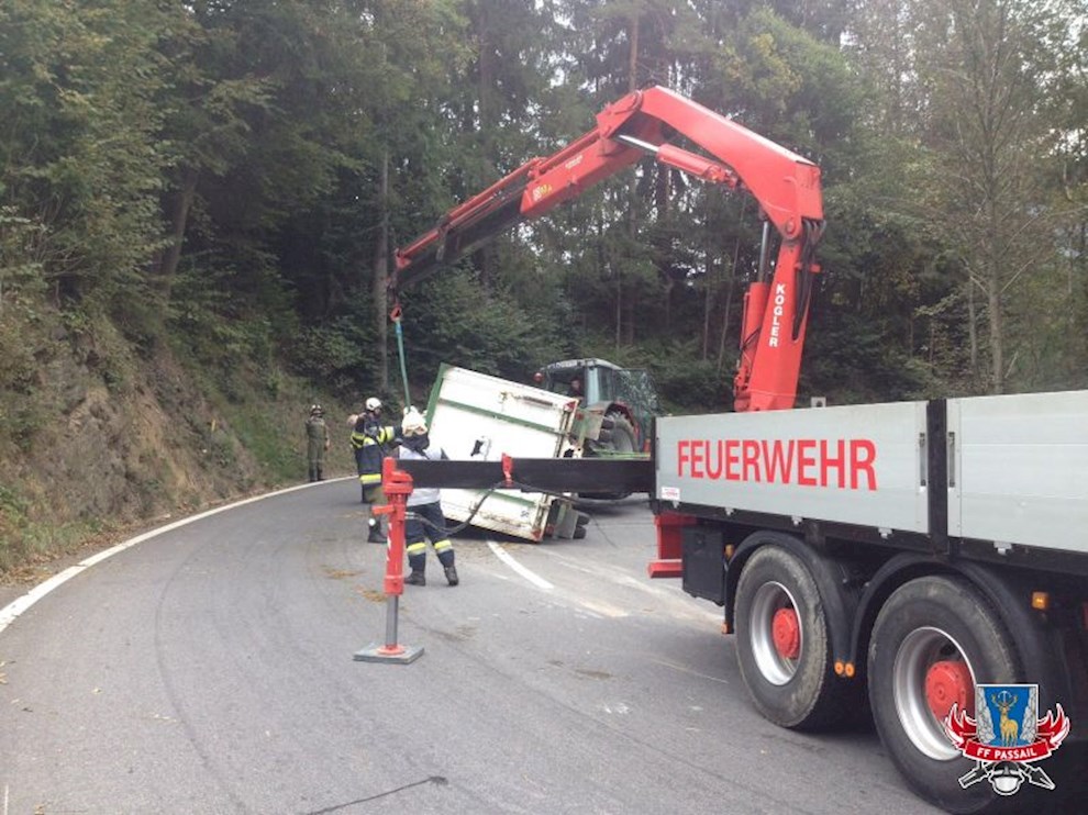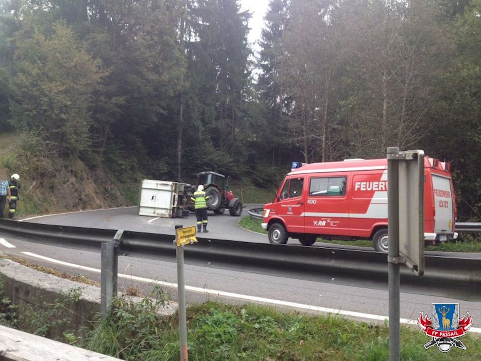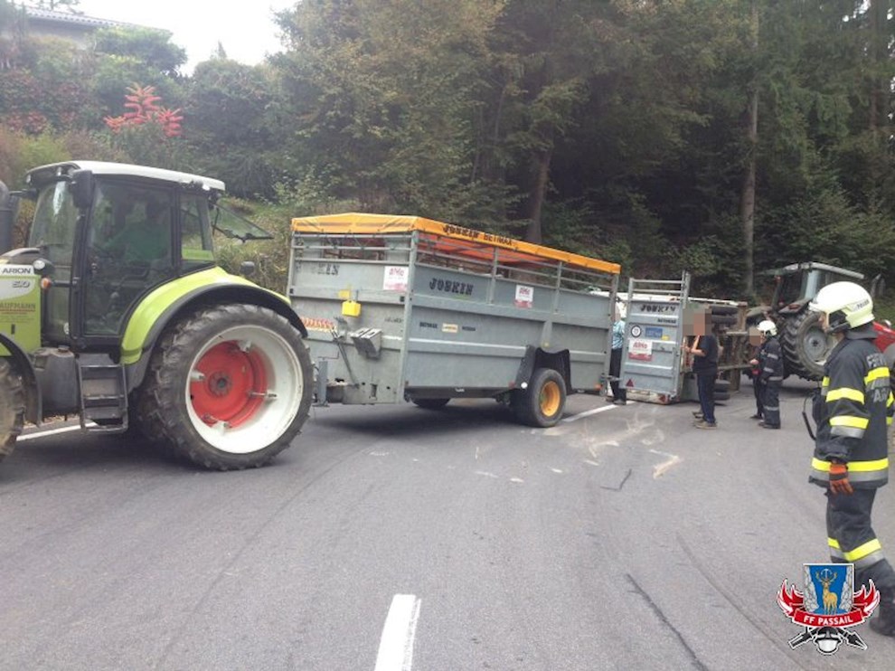 Am 2.10.2016 wurden wir um 9:44 Uhr per stillem Alarm zu einer Traktorbergung auf der B64 Höhe Lammer Riegl gerufen. Ein Traktor hat in einer Kurve einen mit Rindern beladenen Viehanhänger umgeworfen.