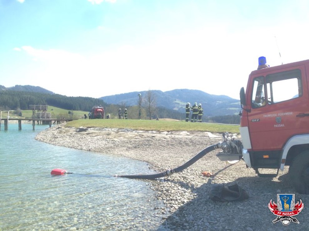 Tätigkeiten: Vornahme von 2 HD- und 2 C-Löschleitungen, Herstellen einer Zubringleitung aus dem See