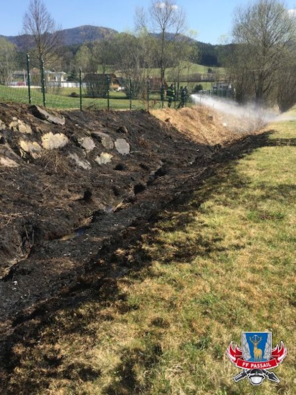 Ein Teil des Grases wurde kontrolliert abgebrannt, damit eine weitere Brandentstehung ausgeschlossen werden kann.