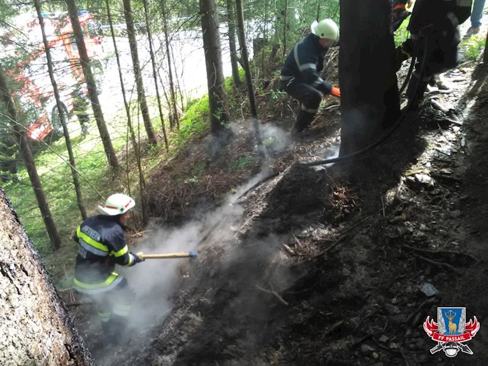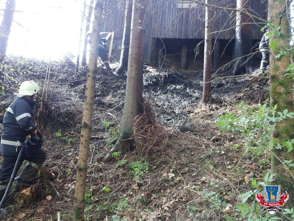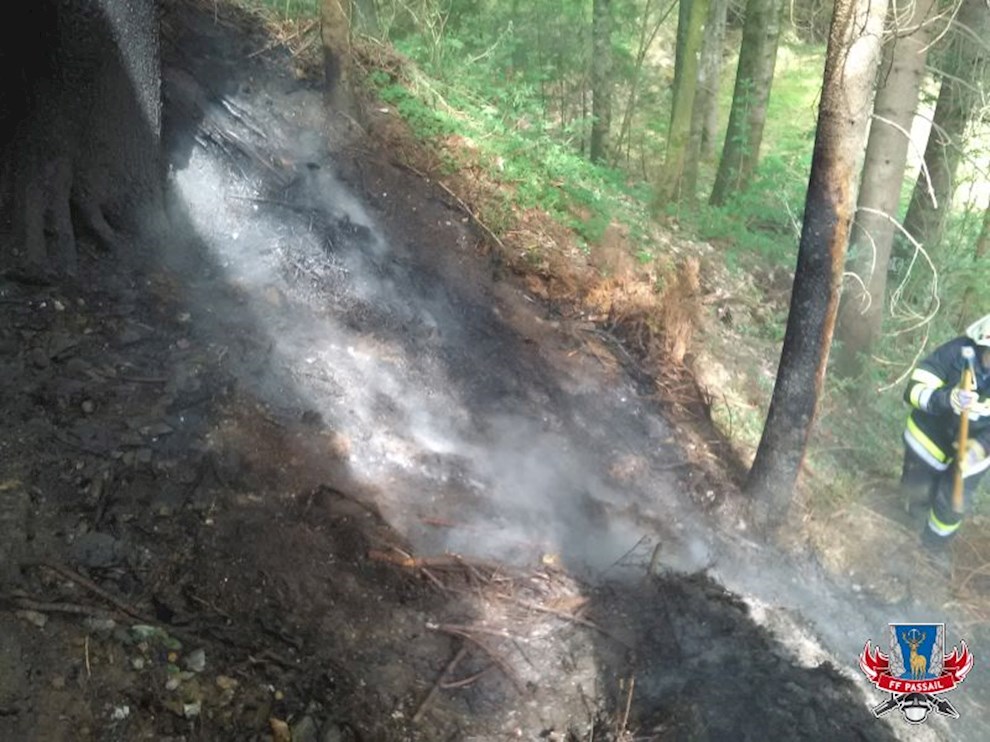 Am 12.4.2017 wurden wir um 12:09 Uhr mittels Sirenenalarm zu einem Waldbrand in Auen gerufen. Aus unbekannter Ursache sind dort mehrere Quadratmeter Waldboden in Brand geraten. Umliegende Bäume wurden nur knapp ein Raub der Flammen.