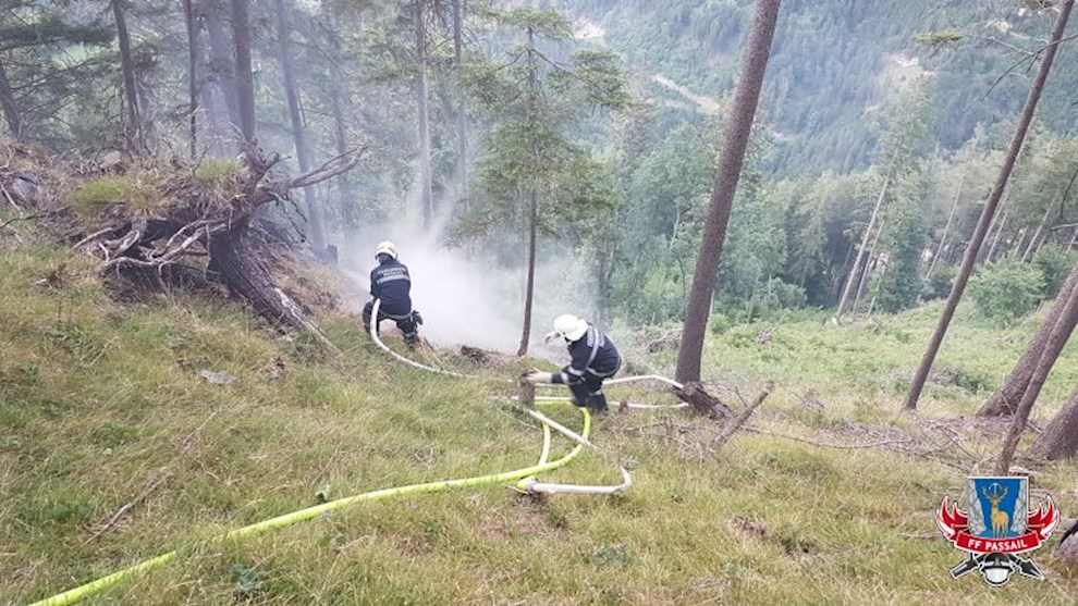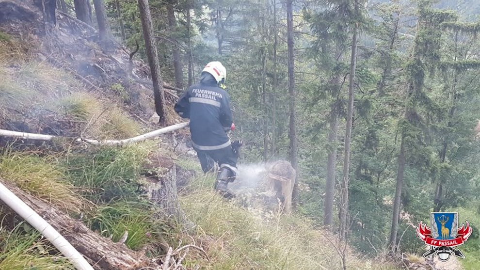 Am 30.6.2017 wurden wir um 19:33 Uhr mittels Sirene zu einem Waldbrand am Wolfsattel alarmiert. Kurz vor der Anhöhe des Wolfsattels standen ca. 100 m² Waldboden in Brand. Die Zufahrt gestaltete sich als langwierig und äußerst schwierig. Dank Lotsen und dem Besitzer konnte der Einsatzort geortet werden und unser TLFA 4000 zufahren. Aufgrund der langen Zufahrt wurde die FF Fladnitz/T. mit dem TLFA 4000 als Wasserzubringer nachalarmiert.