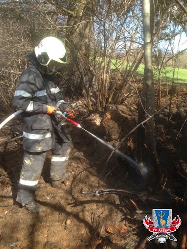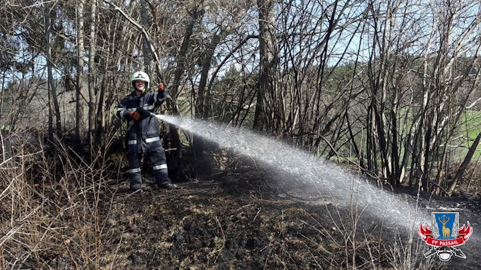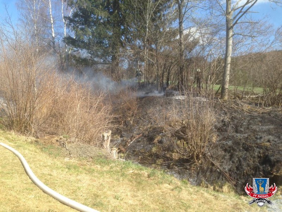 Sofort wurden die Löscharbeiten mit einer HD-Leitung begonnen. Als Angriff auf der zweiten Grabenseite wurden eine B-Zubringleitung und anschließend eine D-Löschleitung verlegt. Nach rund 15 Minuten konnte durch die Kontrolle mit einer Wärmebildkamera "Brand aus" gegeben werden.