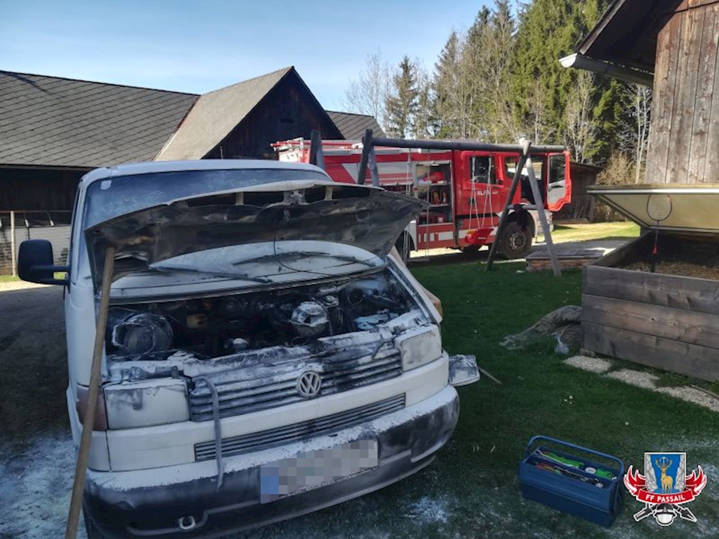 Am Samstag, dem 14.4.2018, wurden wir um 16:31 Uhr per stillem Alarm zu einem PKW-Brand alarmiert. In Haufenreith war es im Motorraum eines Kleinbusses zu einem Brand gekommen. Beim Eintreffen am Einsatzort stand der gesamte Motorraum in Flammen.