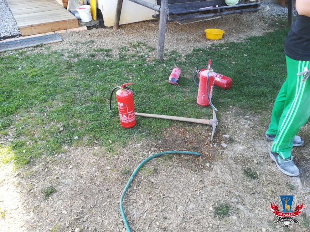 Tätigkeiten: Öffnen des Motorraumes, Löschen des Brandes mittels Feuerlöschern, Nachkontrolle mit Wärmebildkamera, Nachlöschen mittels HD-Rohr