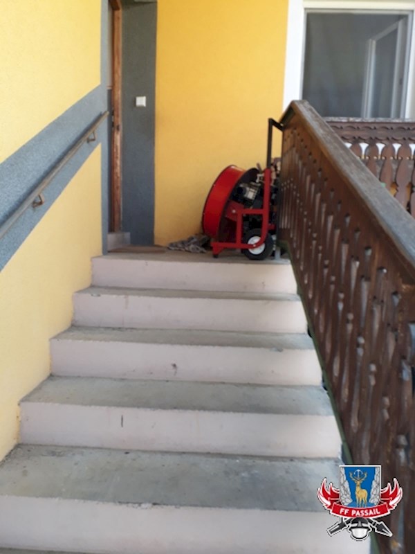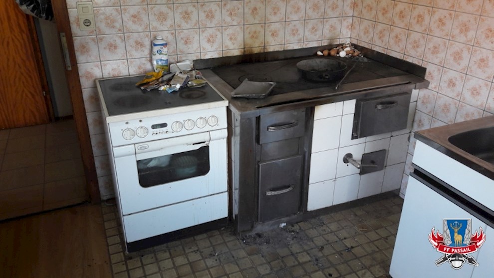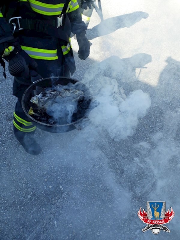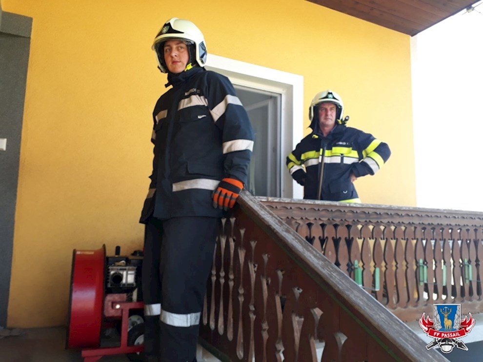 Tätigkeiten: Ausräumen des Ofens unter schwerem Atemschutz, Stellen eines Atemschutzrettungstrupps, Belüften des Wohnhauses mit Druckbelüfter