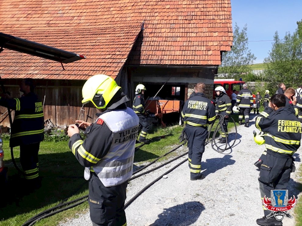 Eingesetzte Kräfte: MTFA, LFA und TLFA 4000, FF Fladnitz/T., Rotes Kreuz, Rauchfangkehrer