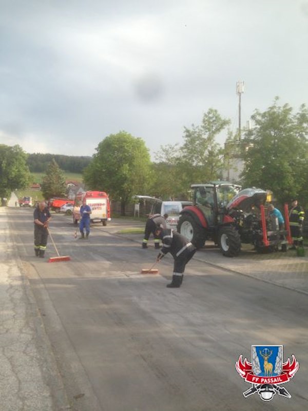Tätigkeiten: Absichern des Einsatzortes, Binden der Ölspur, Reinigen der Fahrbahn