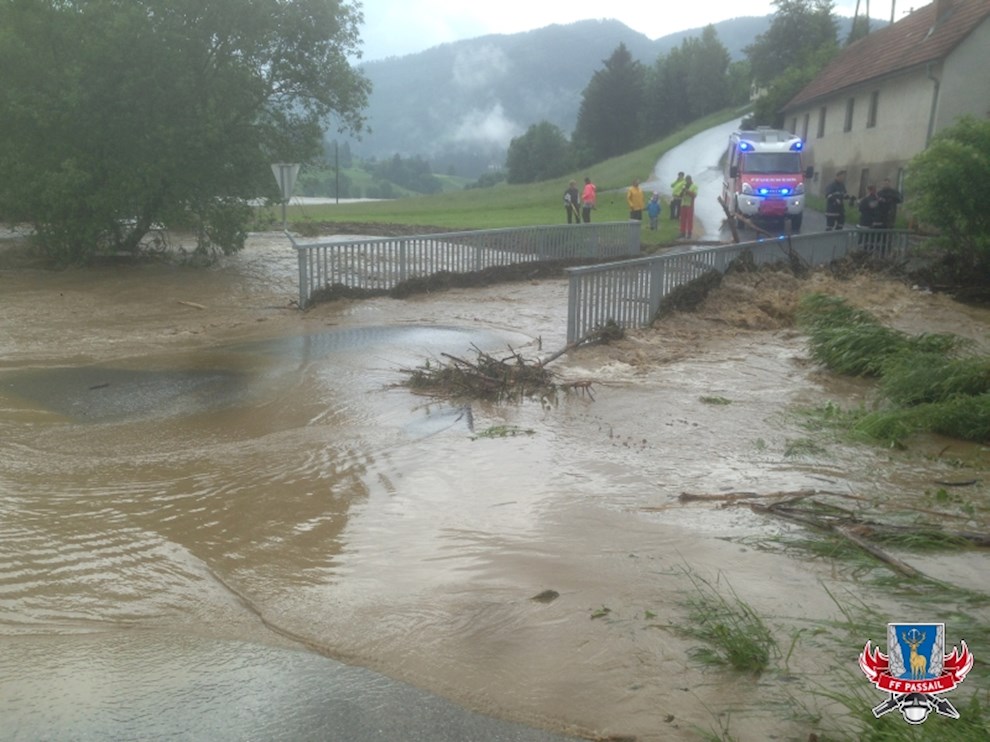 Die B64 war im Bereich zwischen Kreuzung L357 und Kreuzung L320 beinahe zur Gänze überflutet und musste gesperrt werden. Dazu wurden in Kooperation mit den Feuerwehren Fladnitz an der Teichalm, Neudorf bei Passail und Plenzengreith sowie der Straßenmeisterei und den Gemeinden Passail und Fladnitz an der Teichalm mehrere Schergitter und Fahrverbotstafeln aufgestellt und die Absperrungen mit Lotsen gesichert. Als weitere Vorsichtsmaßnahme wurde eine Hochwasserwarnung für die Raab an alle Feuerwehren an der Raab ausgesendet, um sich auf die Wassermassen vorbereiten zu können.