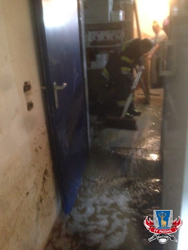 Während diese Sperre aufrecht war, mussten wir noch 2 Keller auspumpen: zum einen beim Fernheizwerk Passail und zum anderen beim Anwesen Harrer im Bereich der Straßensperre.