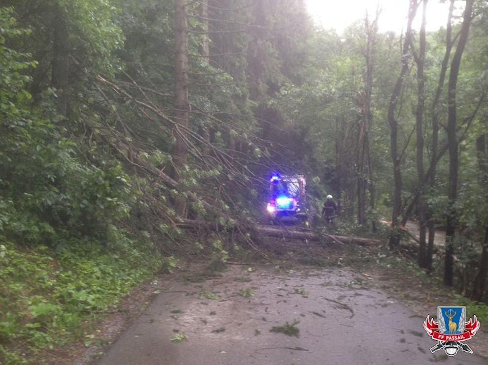Am Morgen des 14.6.2018 war ein weiterer Einsatz erforderlich. Um 6:20 Uhr wurden wir mittels stillem Alarm zu mehreren, über die Straße gefallenen Bäumen auf der Raabstraße Richtung Arzberg gerufen.