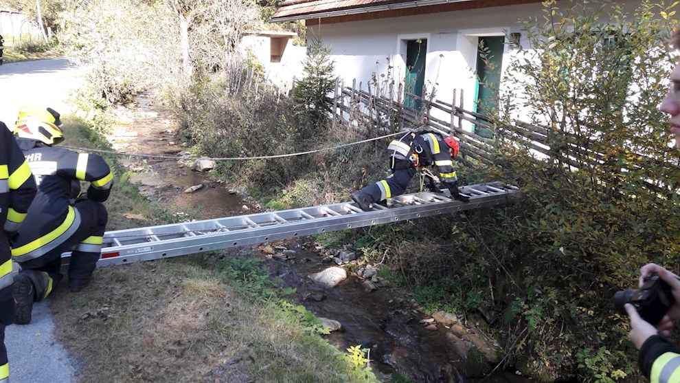 - Herstellen eines provisorischen Laufstegs über einen Wasserweg (Übungsannahme: Brücke zersört nach Hochwasser)